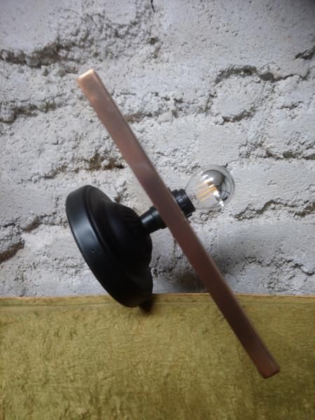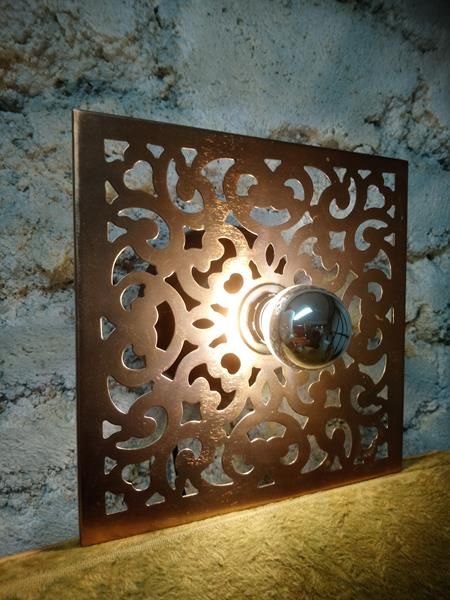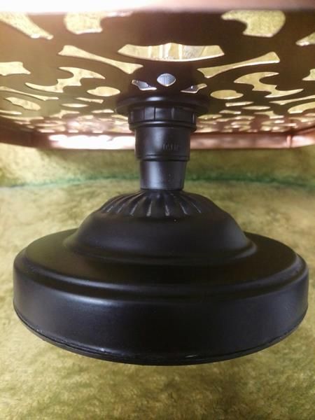 Conçue sur la base d'un pied de lampe à poser noir et d'un couvercle décoratif de boite en métal.