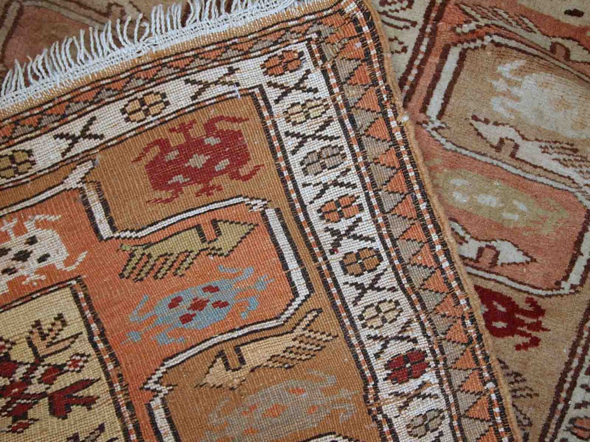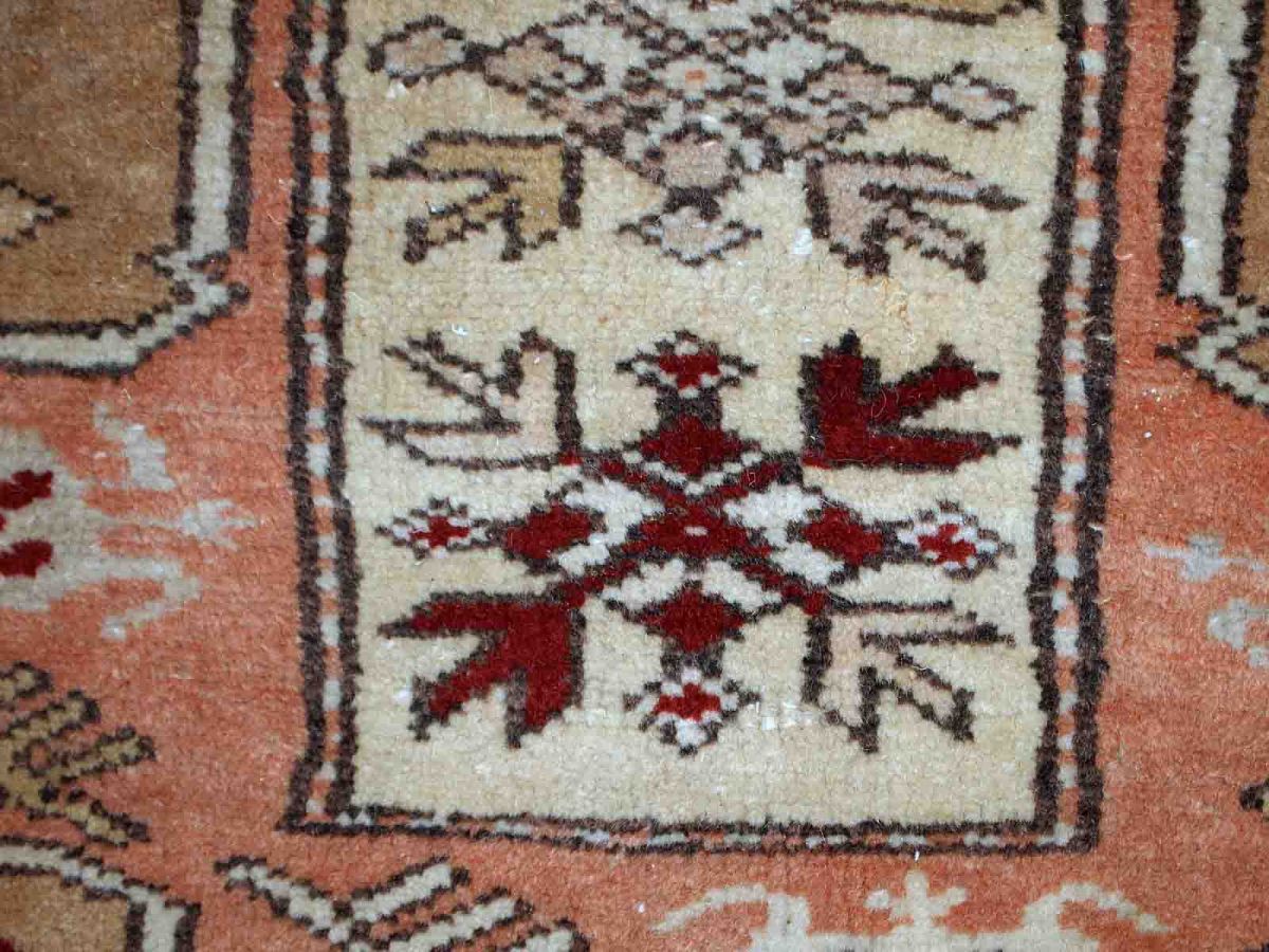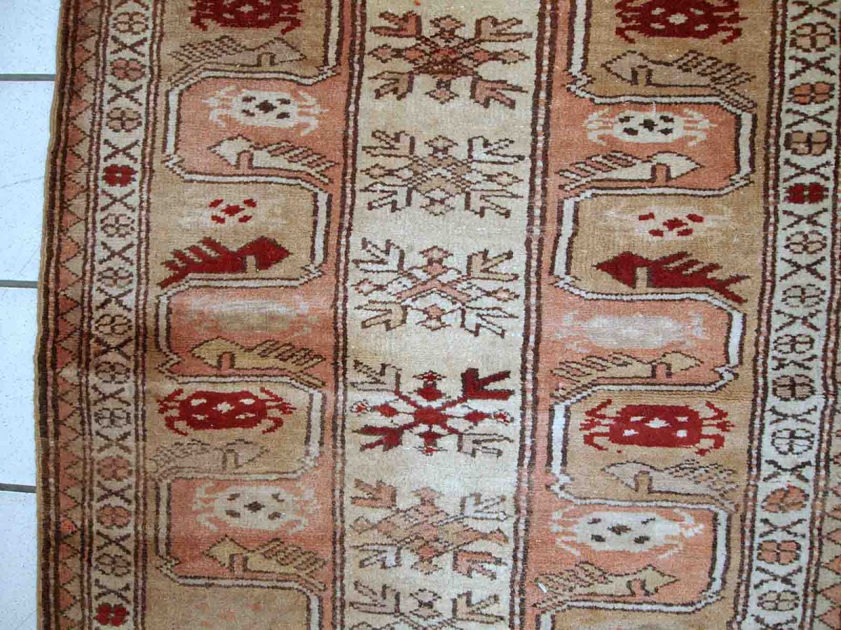 Turkish Oushak narrow runner from the middle of 20th century in original condition, one corner is missing.