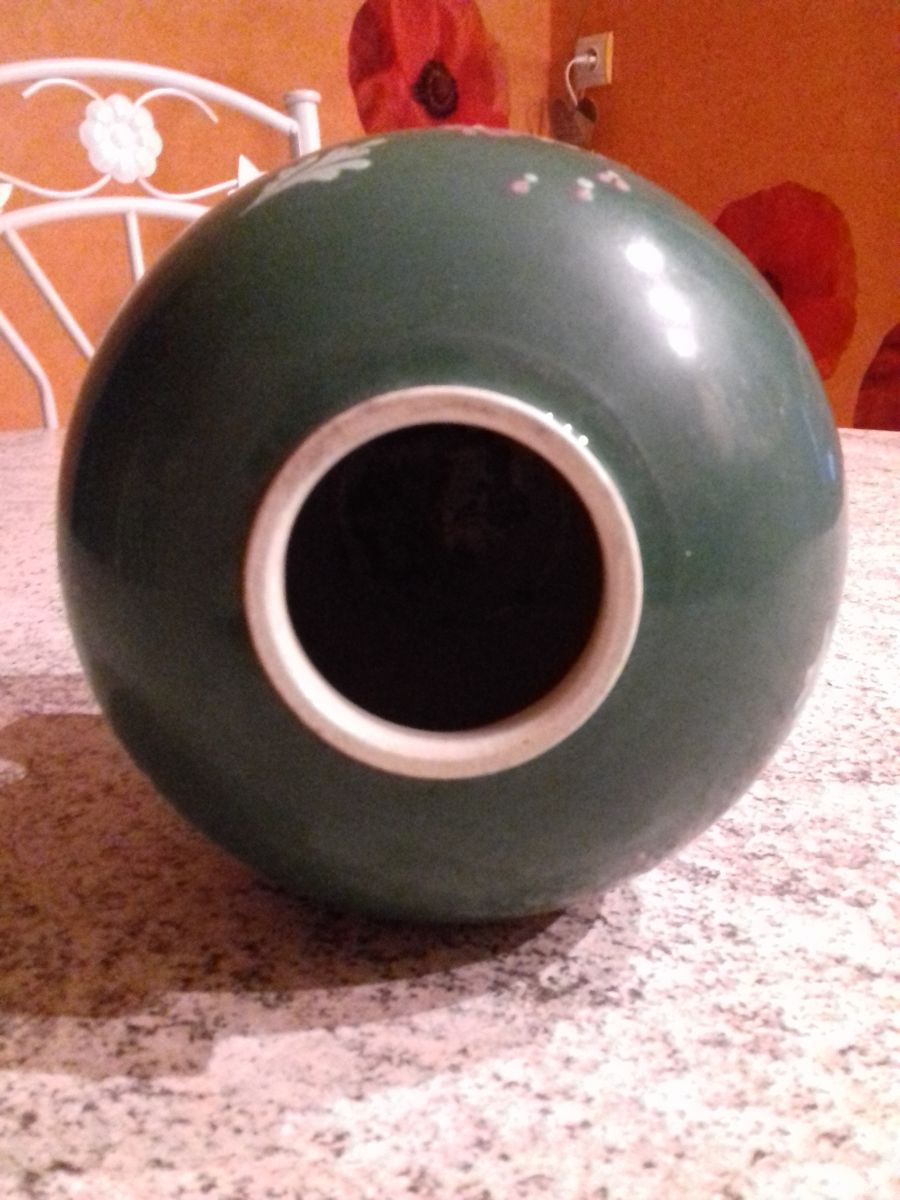 Petites fleurs coloris rose et feuilles coloris vert bleuté peintes sur la céramique vernie et brillante