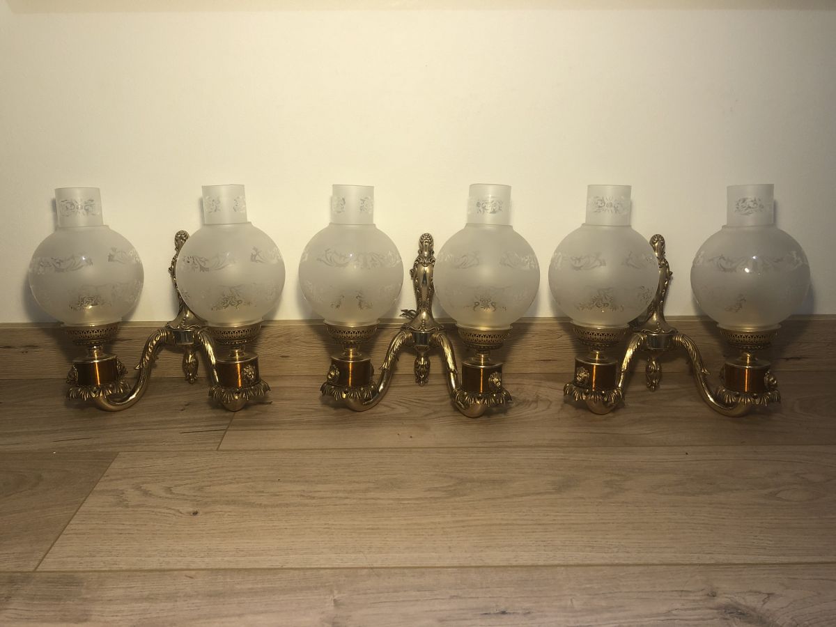 - lot de 3 appliques murales coordonnées au lustre ci-dessus. Hauteur 30cm, largeur 30cm, profondeur 17cm.