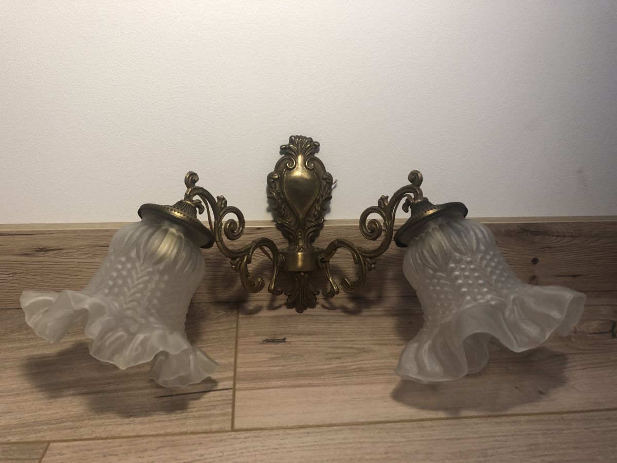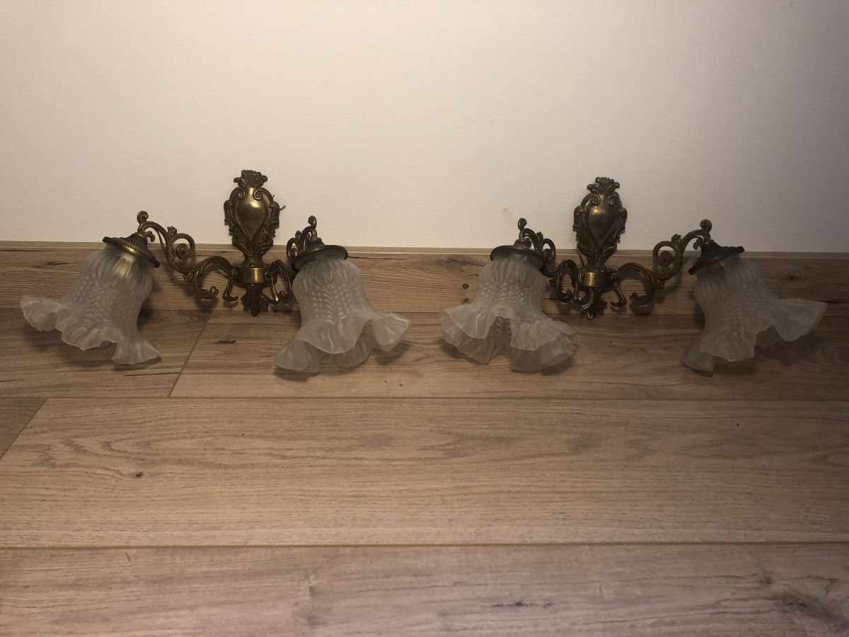 - 2 appliques murales coordonnées au lustre ci-dessus, hauteur 24cm, largeur 40cm, profondeur 20cm.