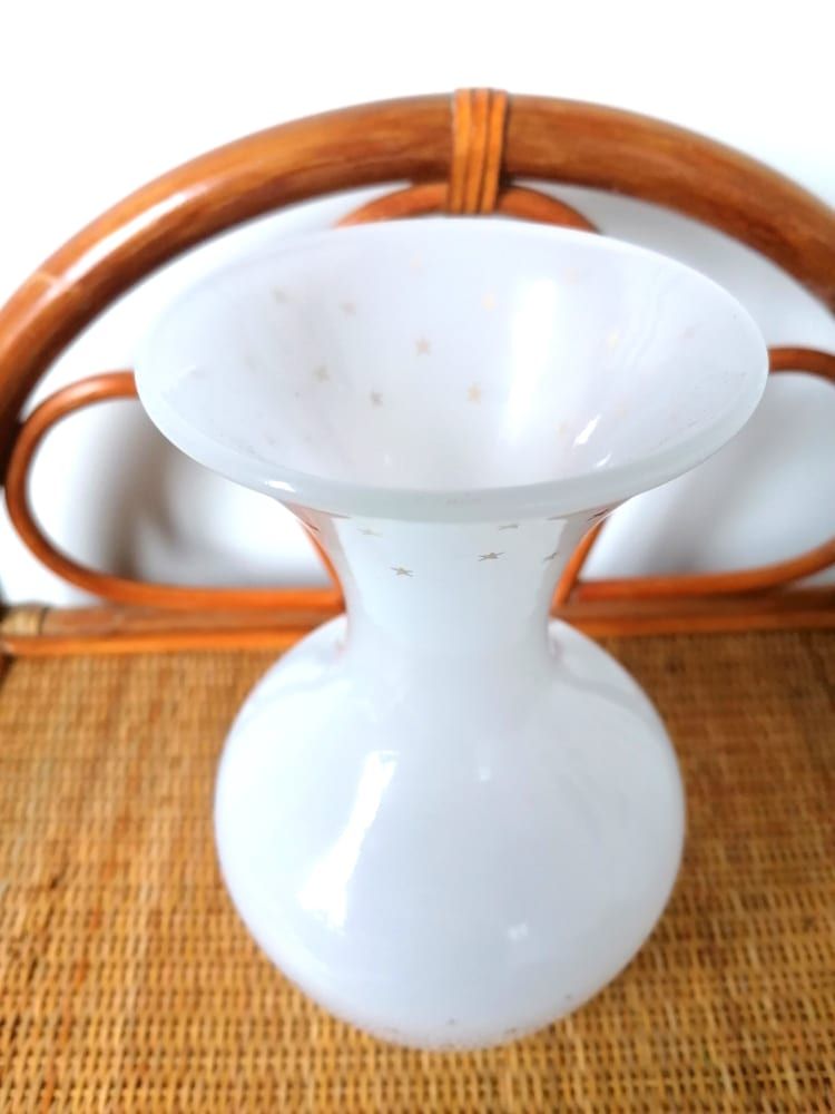 Vase en verre opalin blanc, à décor d'un semis d'étoiles dorées.