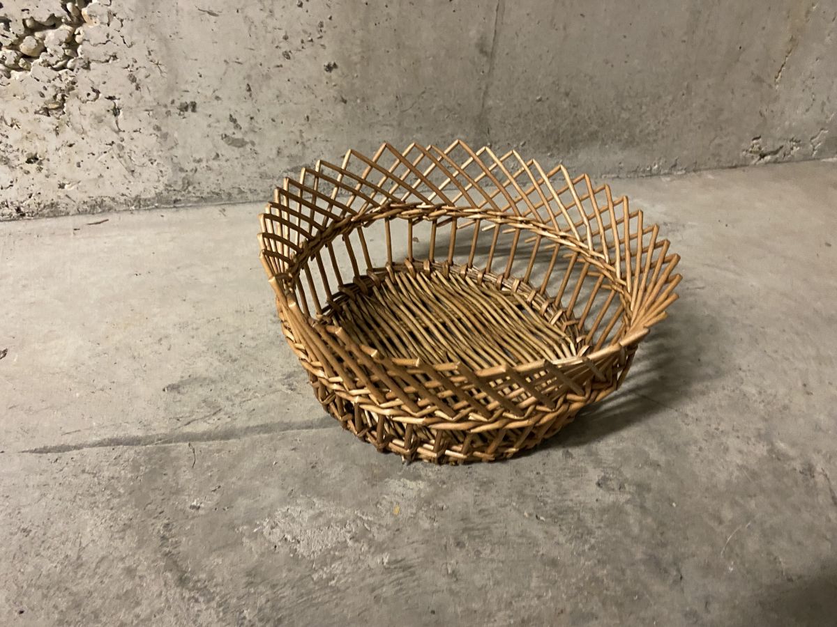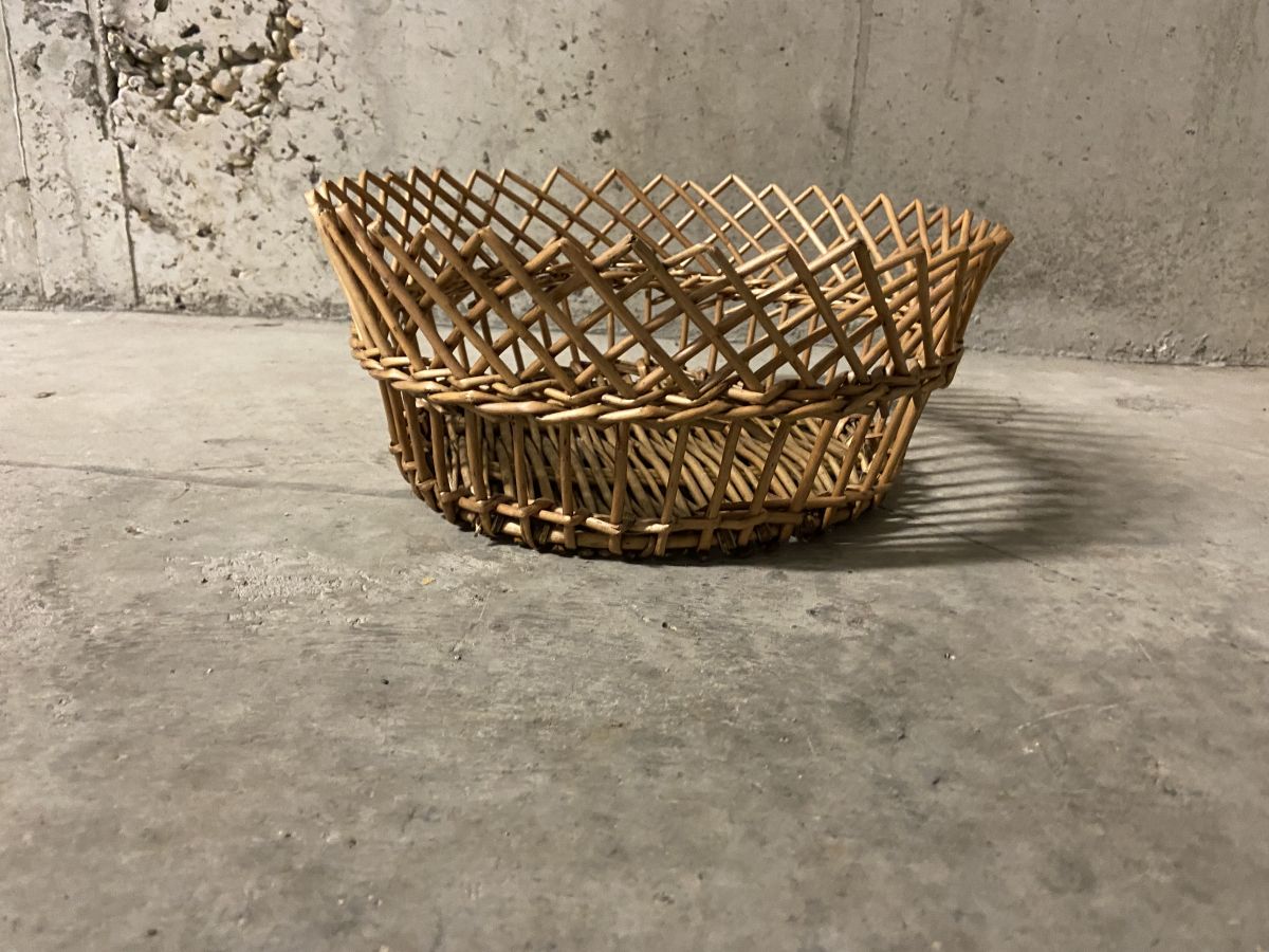 Corbeille en rotin, diamètre 30cm, hauteur 13cm, bon état.