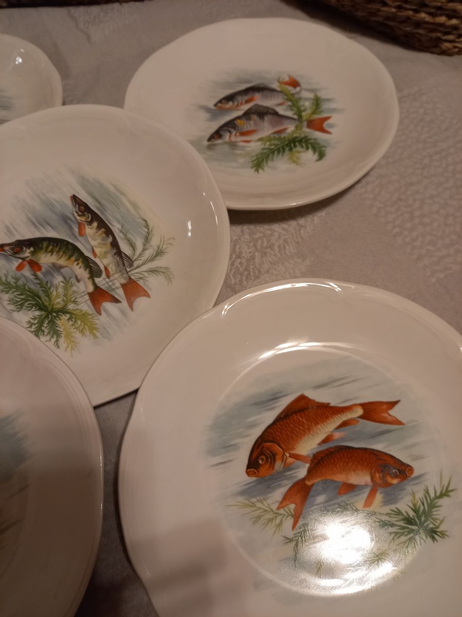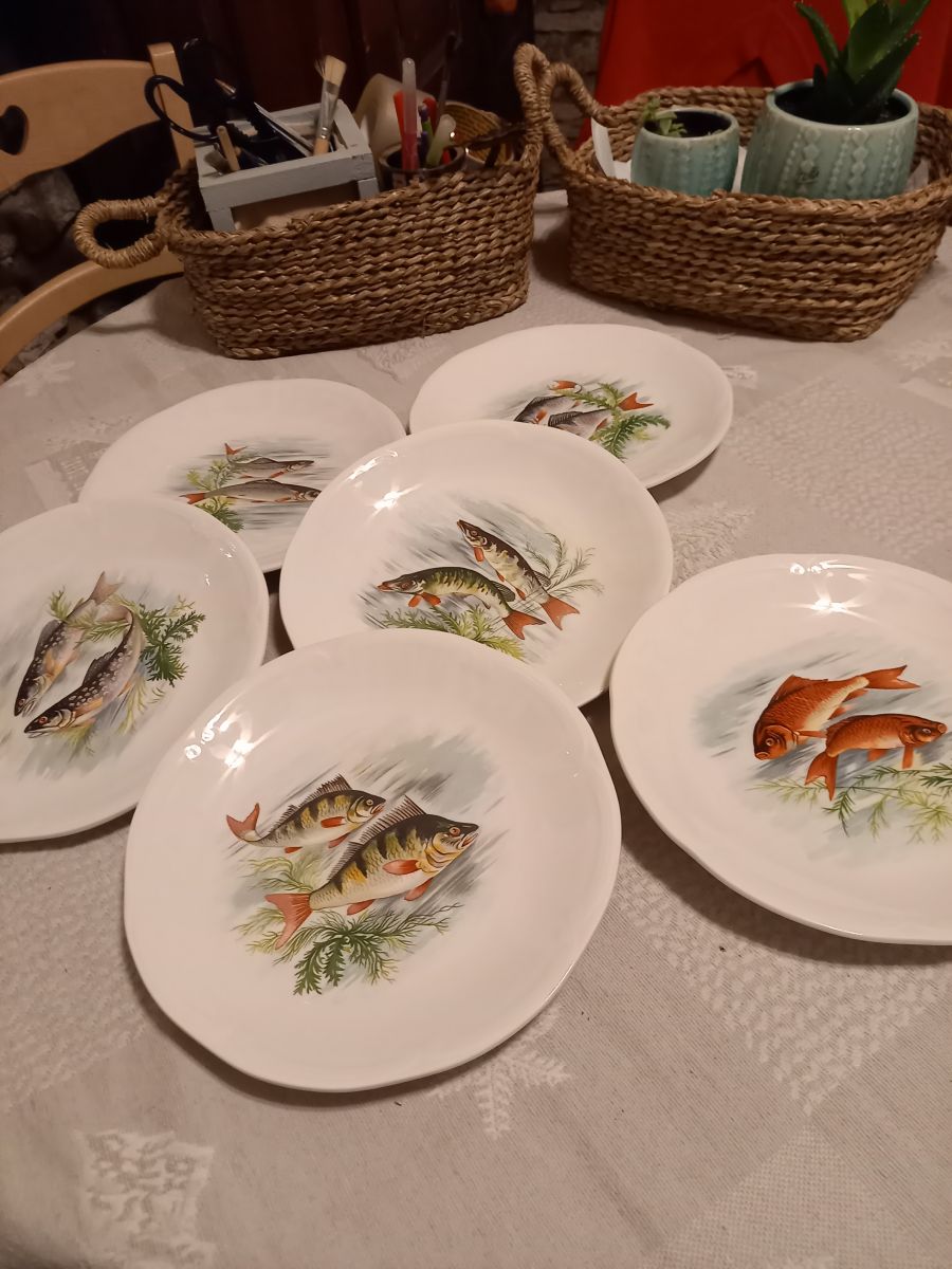 6 assiettes à poisson en faïence de Gien