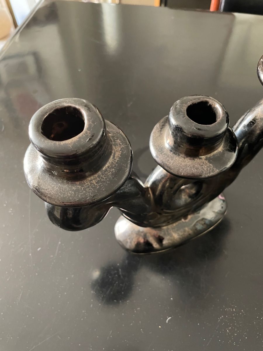 bougeoir en céramique noire des années 50