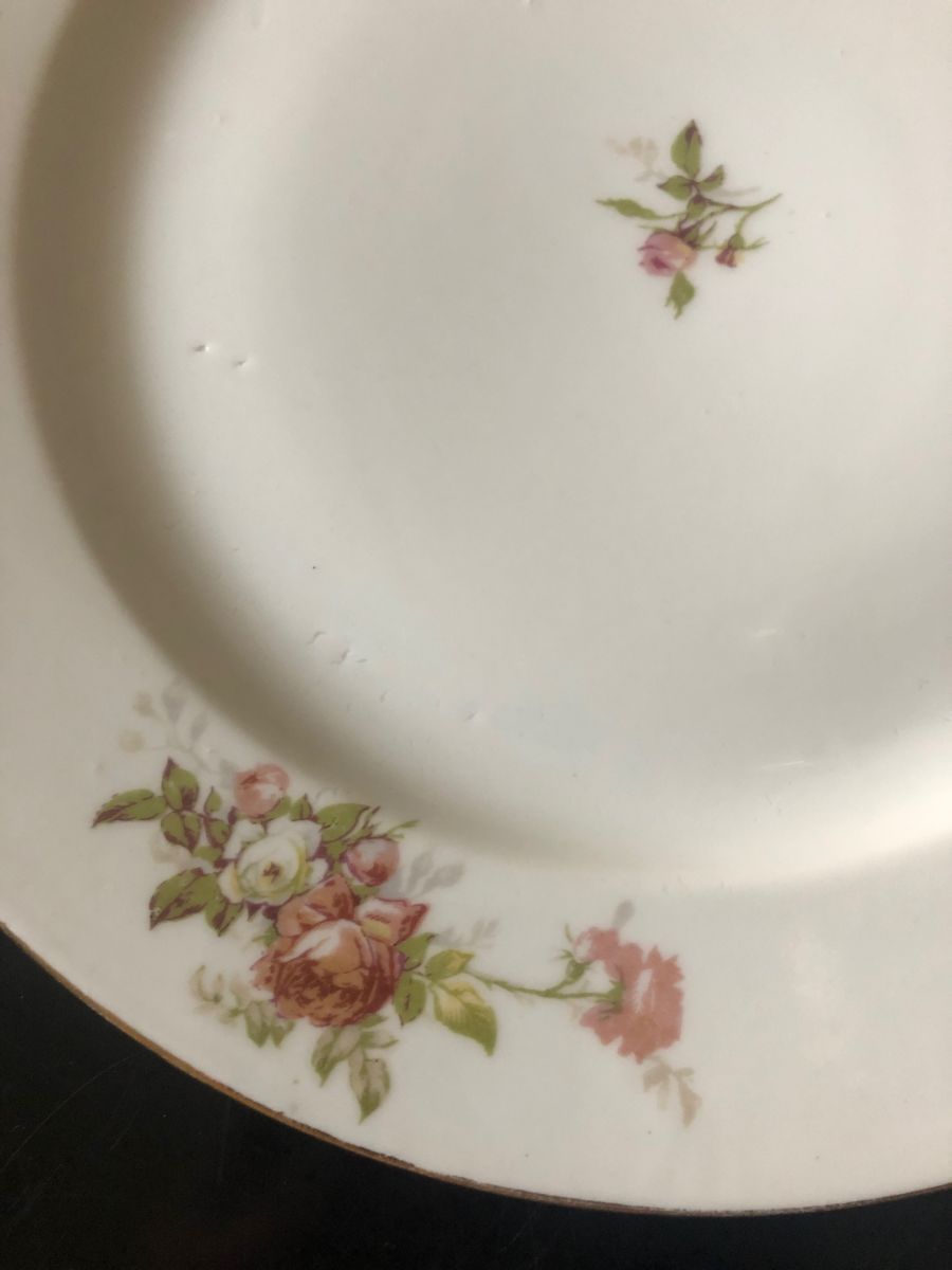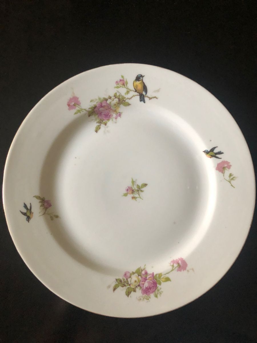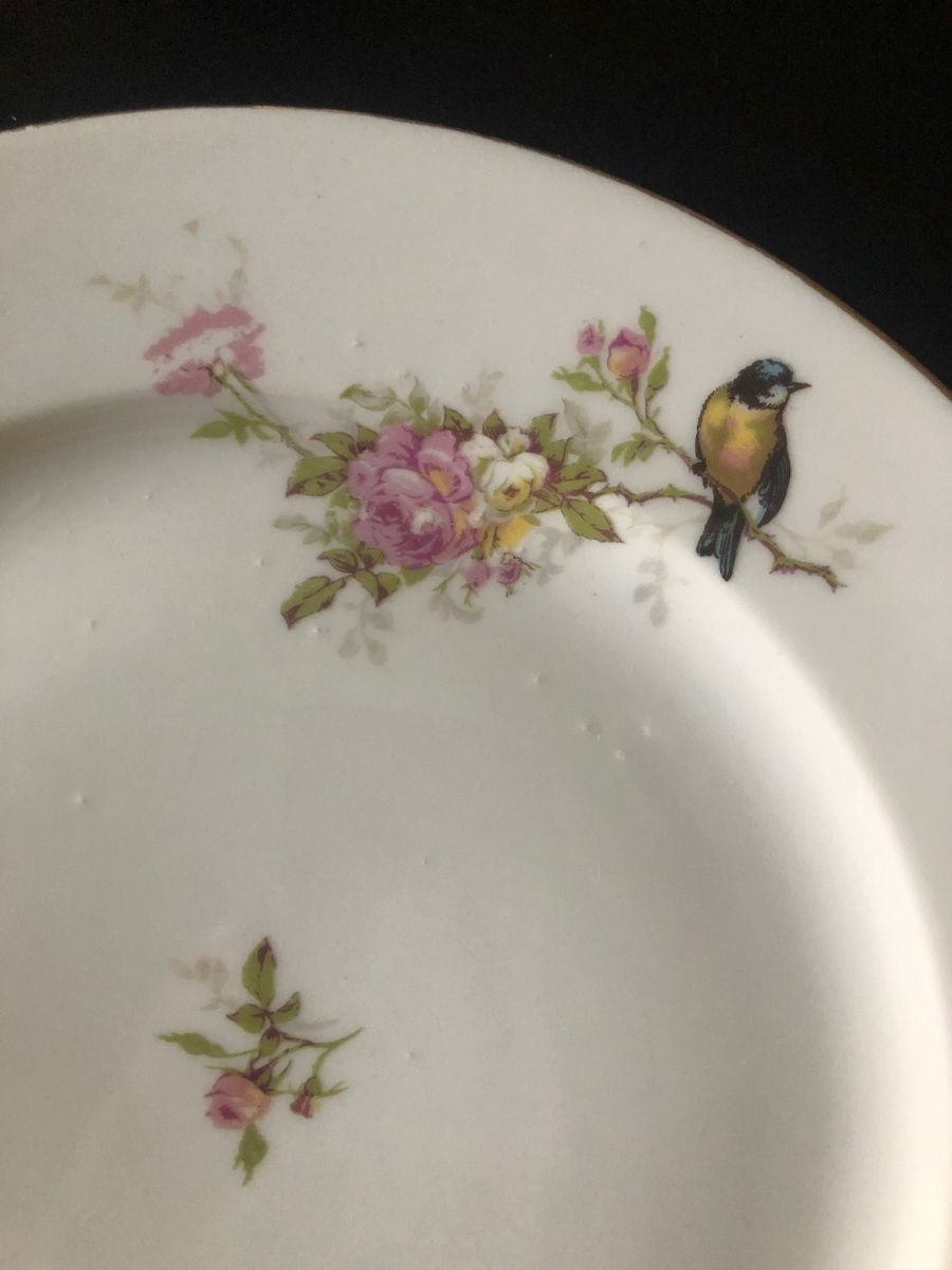 assiettes en porcelaine au décor de fleurs et d'oiseaux , années 50