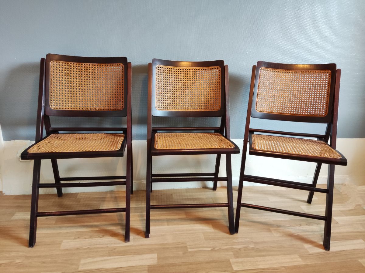 chaises pliantes avec cannage sur assise et dossier des années 80