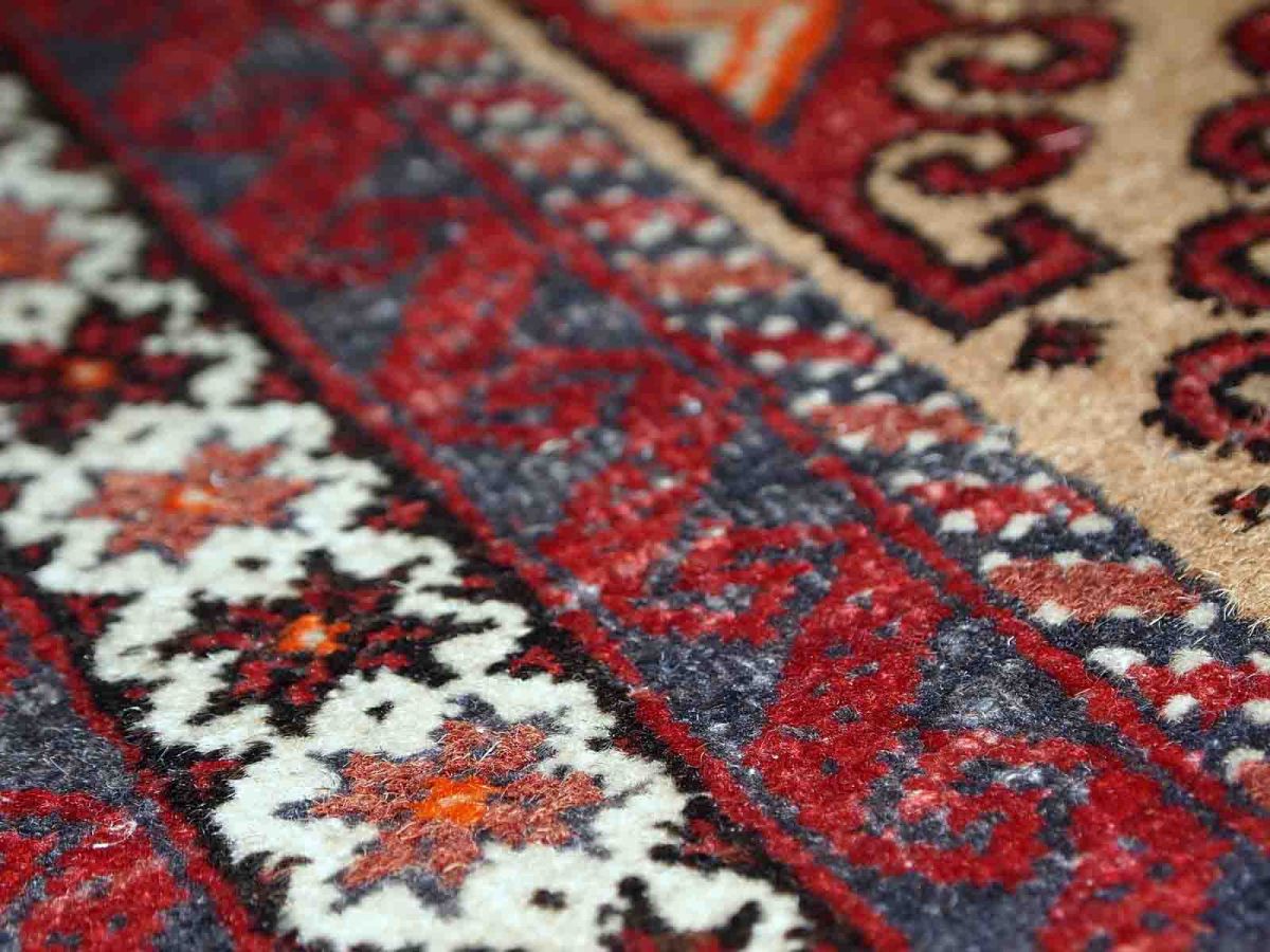Handmade vintage Afghan Ersari rug in cream beige shade. The rug is in original good condition, made out of wool. The border decorated in little stars.
