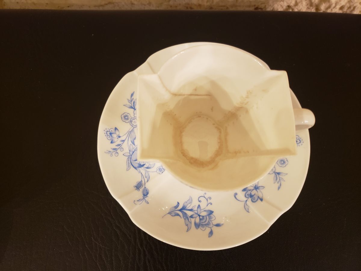 1 tasse est tâchée et fendue mais ne fuit pas. Estampillées Ra n°43302