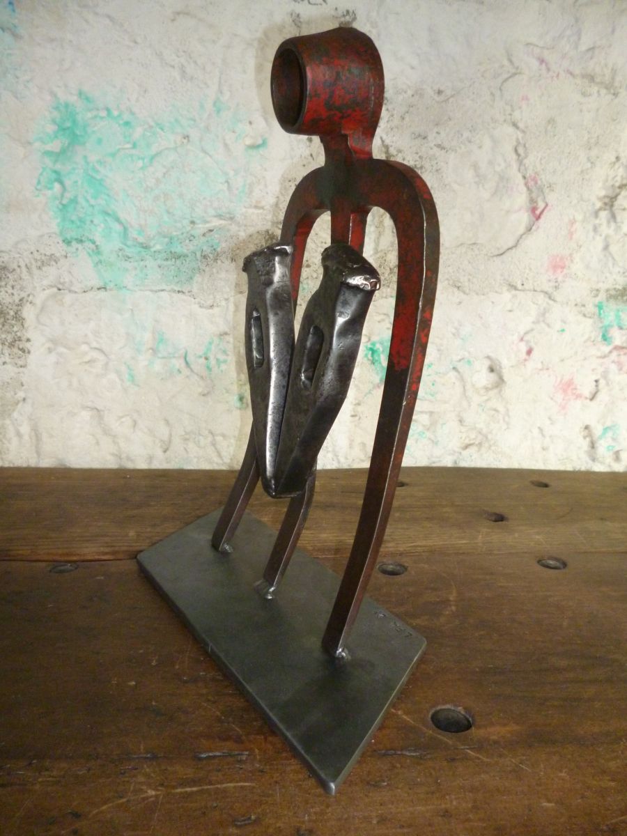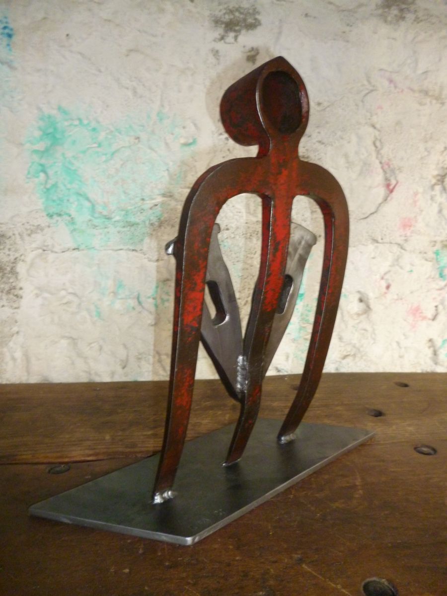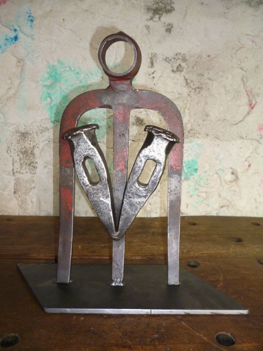 Sculpture realisee apres decoupage et soudage d'anciens outils en acier .