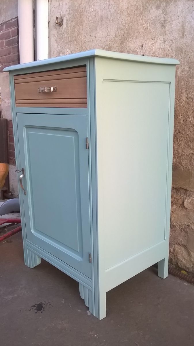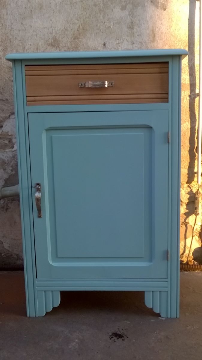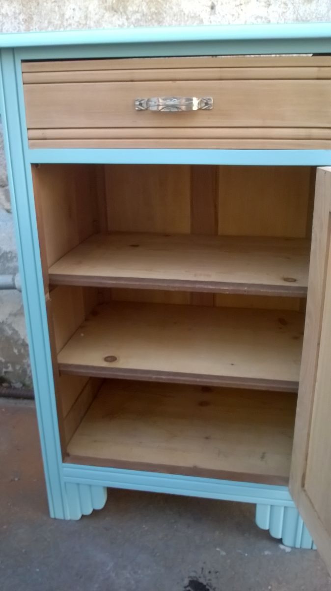 il a été traité, poncer et repeint de couleur bleu vert.