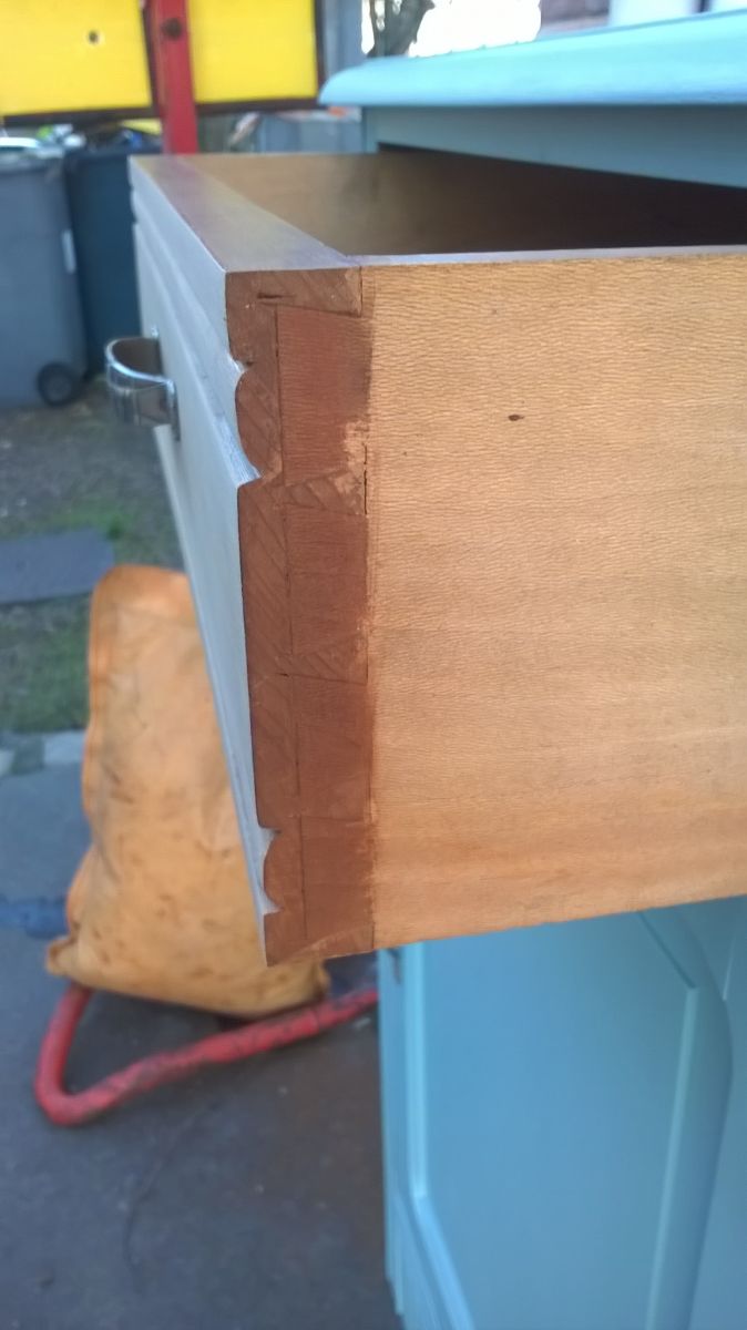 le tiroir est en bois brut,montage queue d aronde.