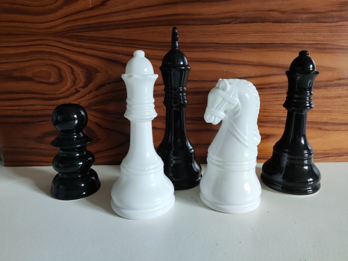 lot de 5 pièces d'échec noir et blanc en céramique