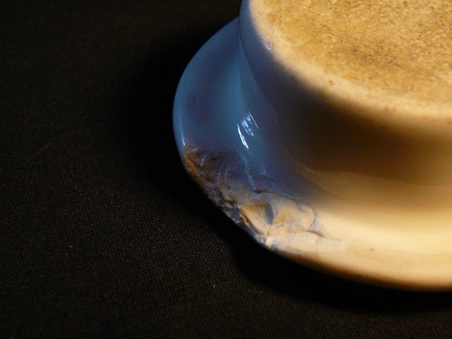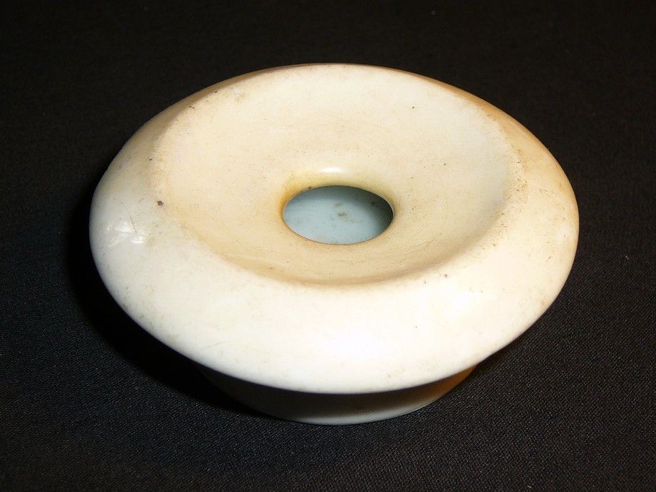 raregrand encrier en porcelaine de grand bureau dimensions hauteur 3 cm diamètre colerette 7cm5 diamètre du bas 5cm 2 éclats