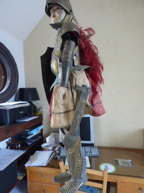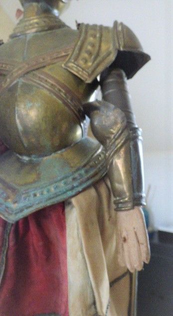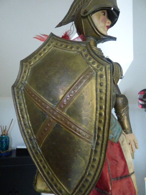 Sa structure est en bois polychrome habillée d’une cuirasse, d’un bouclier