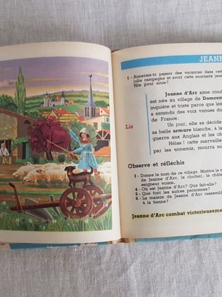 Découvert dans le grenier de mes parents, ce petit ouvrage intitulé "Mon premier livre d'histoire", daté de 1957, édité chez Armand Colin. Nombreuses illustrations en couleur. 63 pages. Quelques rousseurs sur la couverture.