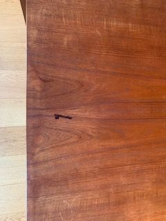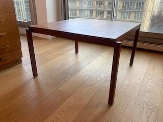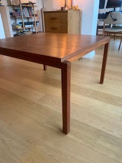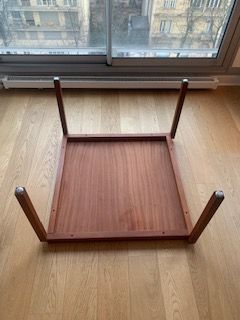 Dimensions : * plateau : 84 cm x 84 cm * largeur avec pieds : 87 cm * hauteur : 52,5 cm