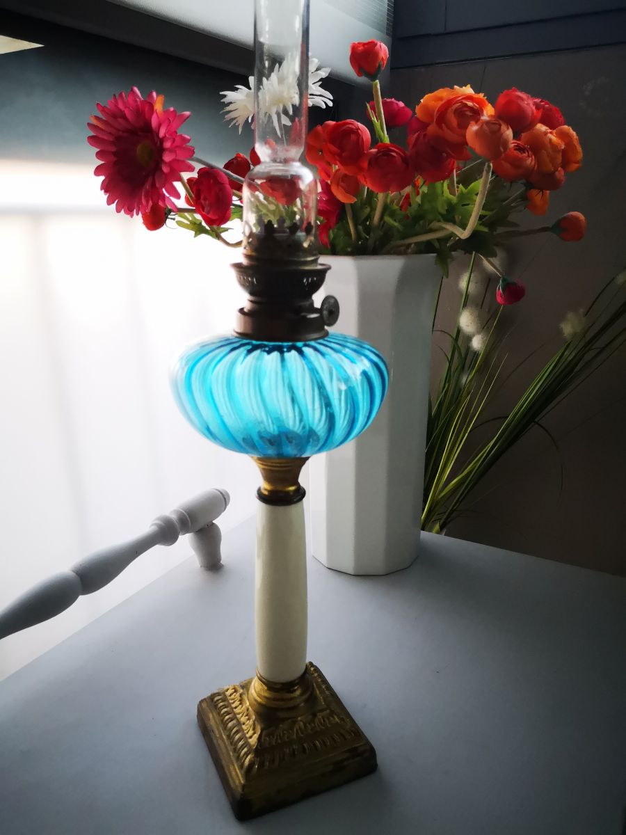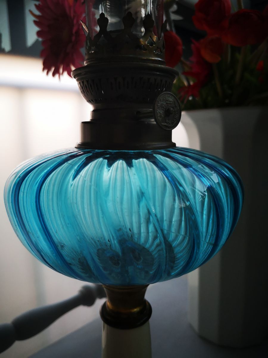 lampe pétrole bleu