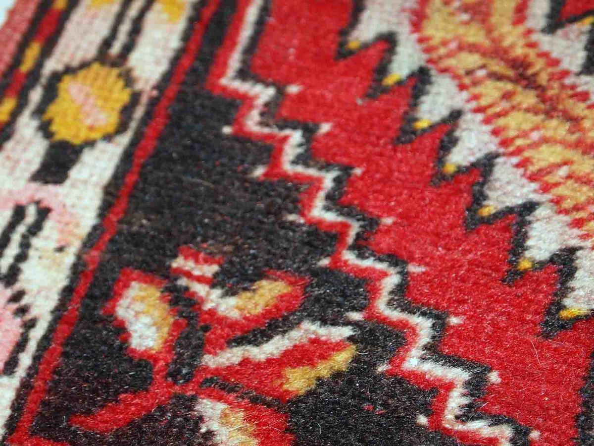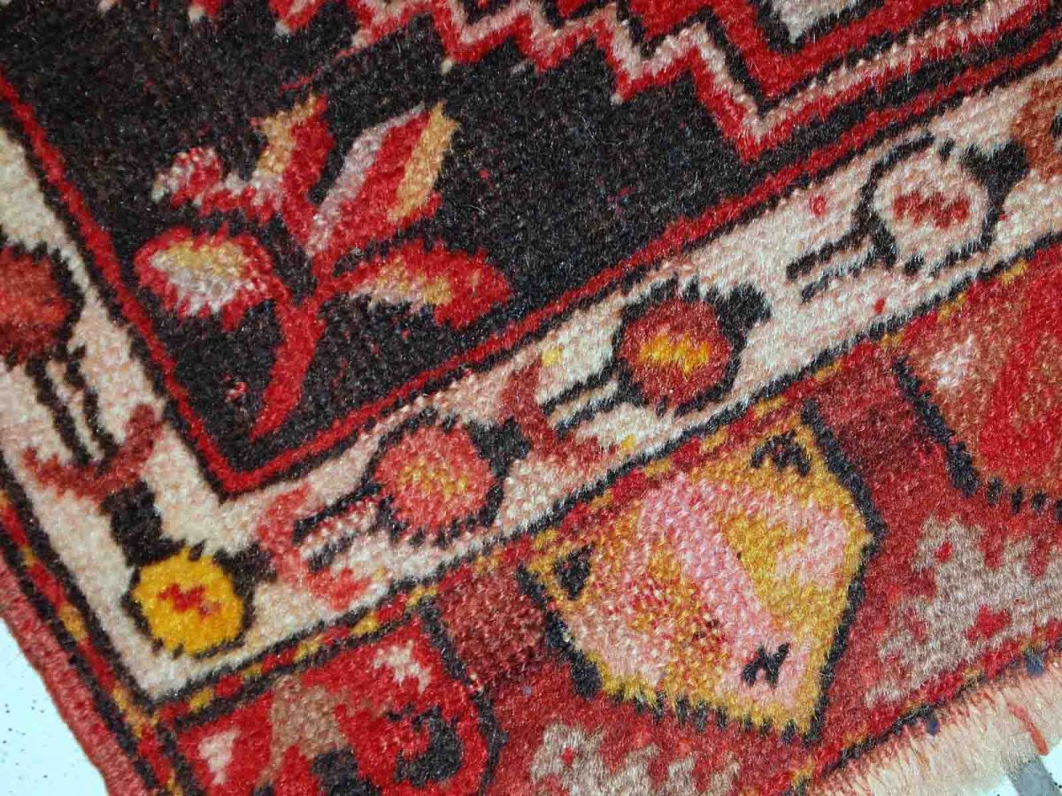 Handmade vintage Turkish Yastik rug in bright red colour. The rug is in original good condition from the middle of 20th century.