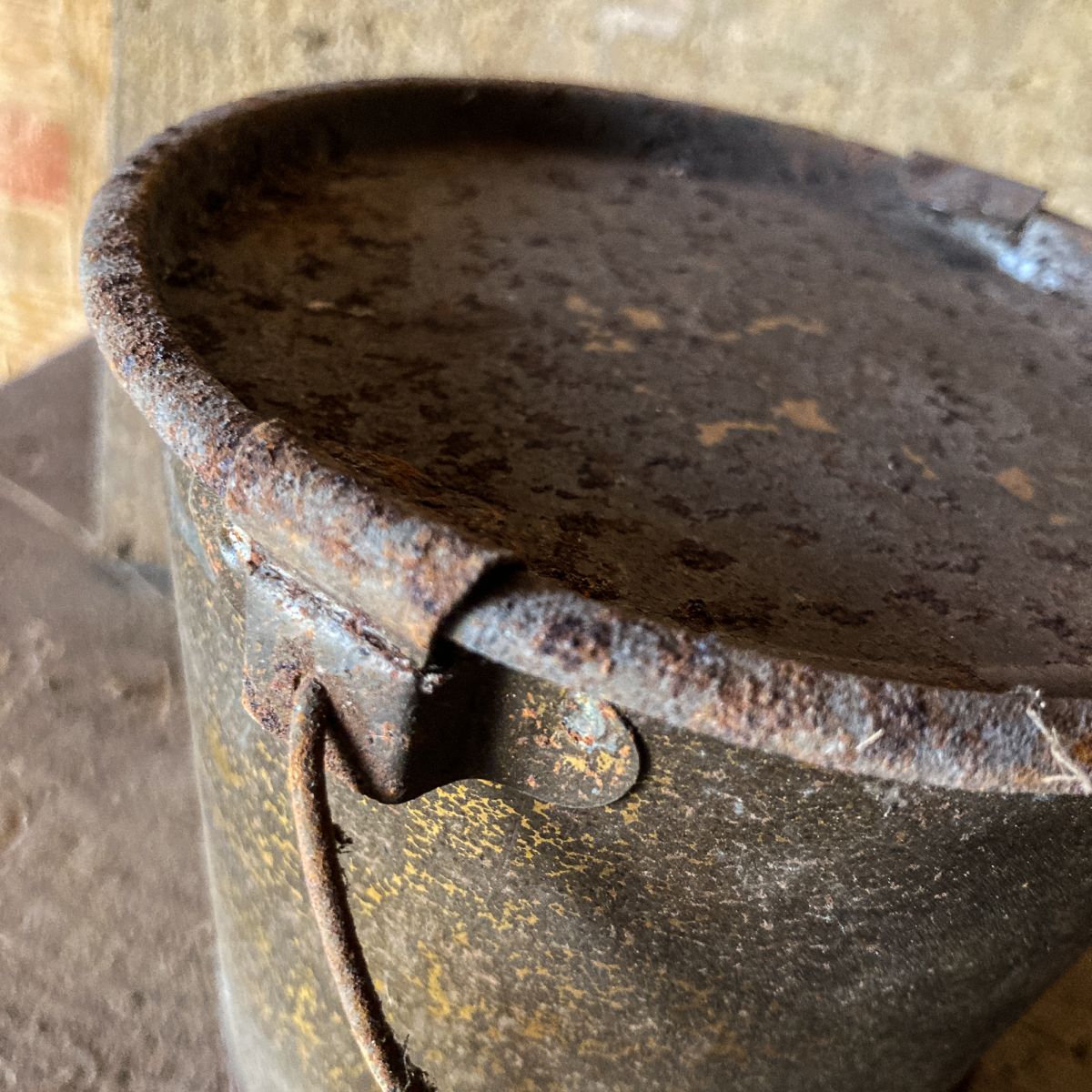 Seau métallique piqué de points de rouilles mais solide malgré tout.