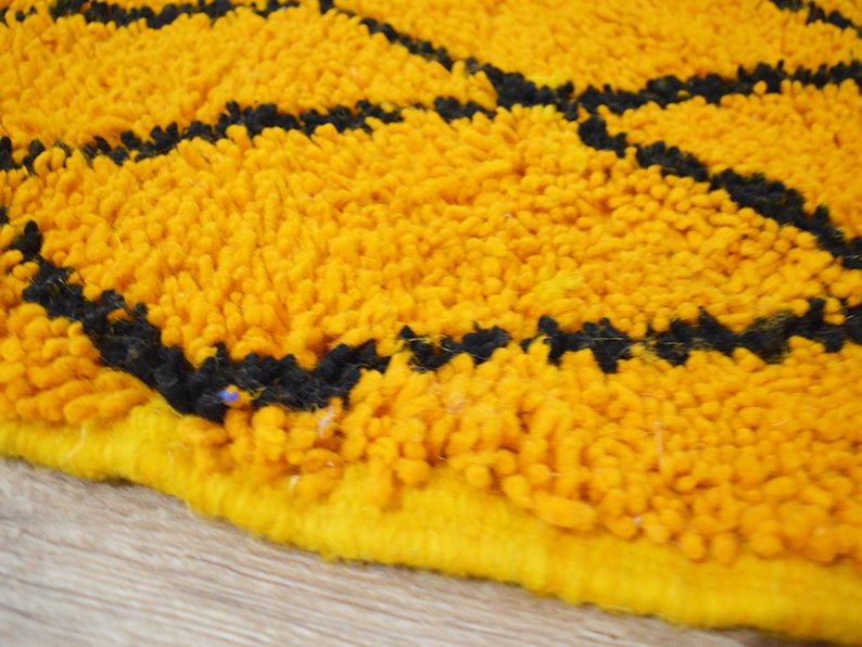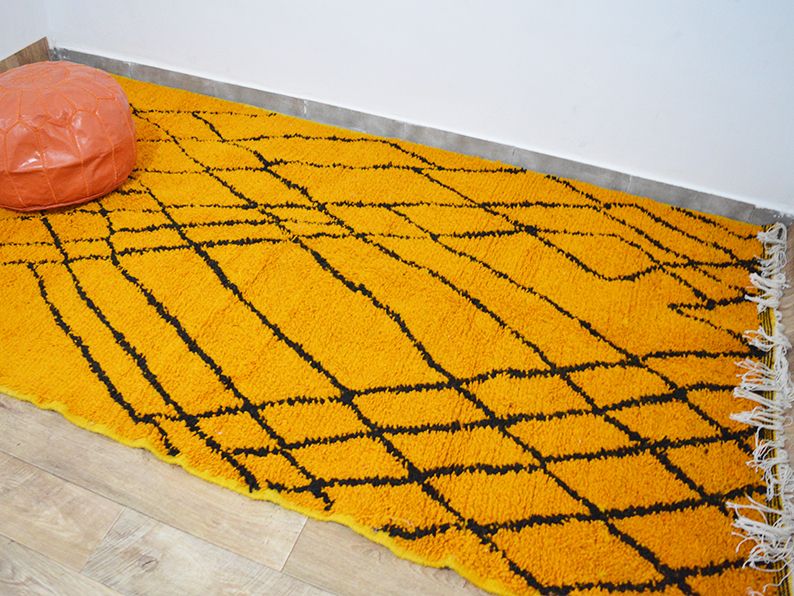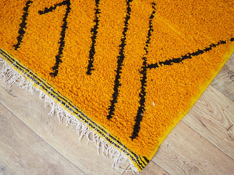 Noués à la main par la femme berbère des montagnes du Haut Atlas, les tapis sont fabriqués à partir de laine vierge brute avec une alternance de motifs composés d'un seul nœud et d'une ou deux lignes tissées. L'écriture trouvée sur le tapis raconte une histoire, bien qu'elle ne soit plus directement liée à la femme qui l'a créée, elles partagent toujours des écritures et des histoires traditionnelles sur la vie rurale, la féminité, la spiritualité, la maternité, le mariage et les carrières.