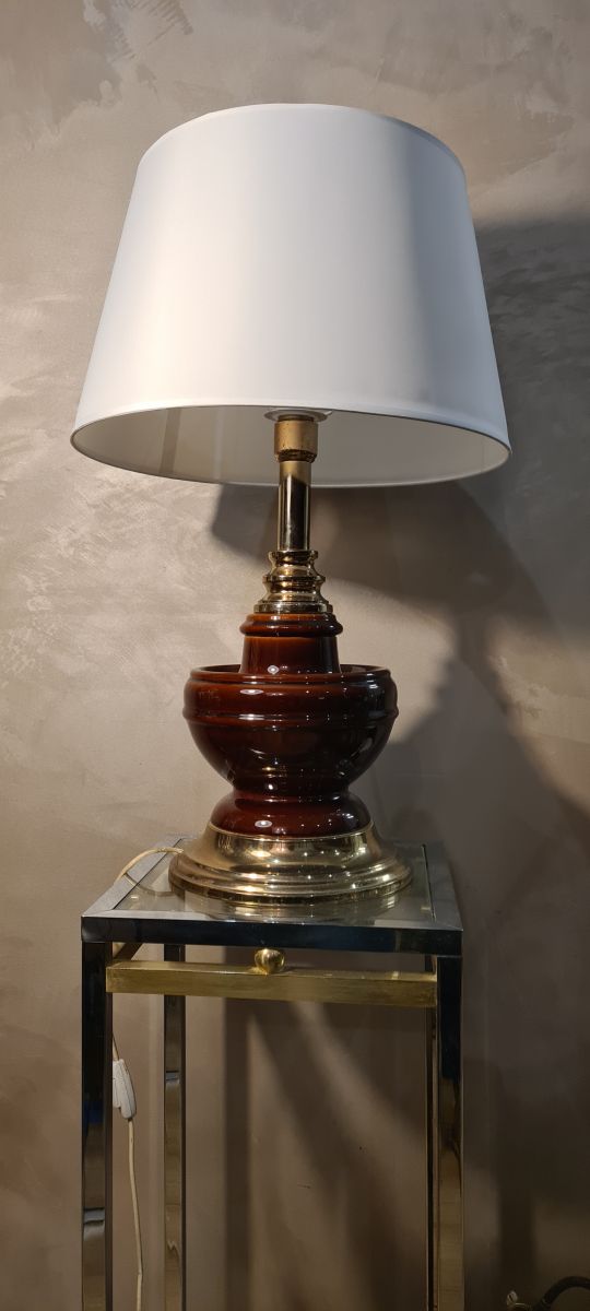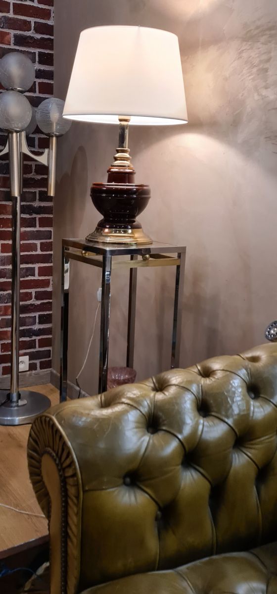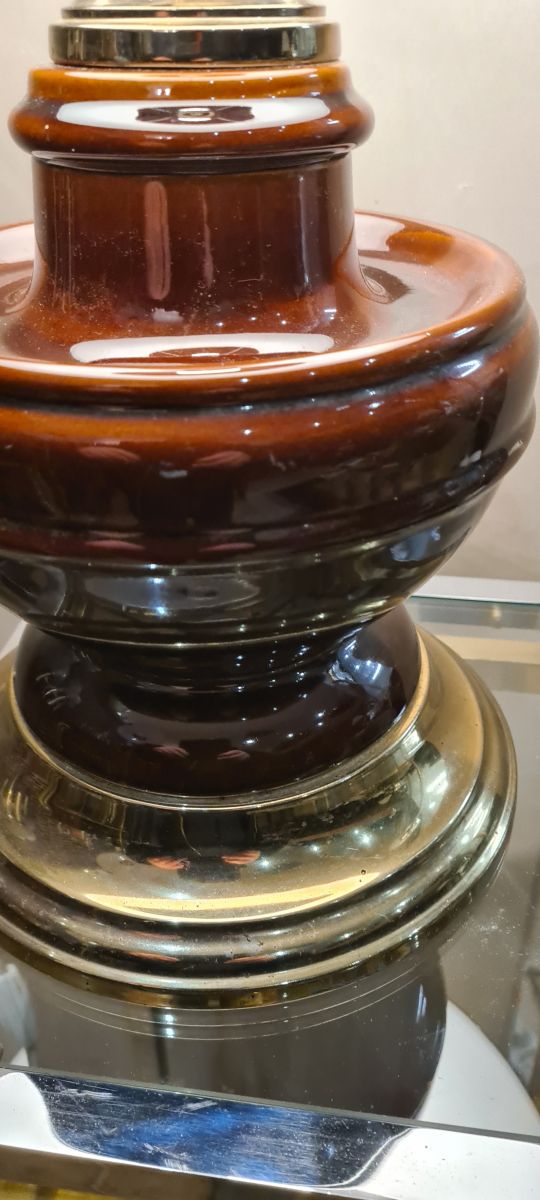 grande lampe de luxe 1980 ceramique chrome or abat jour bla
