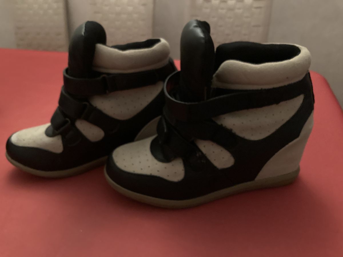 BOTTINES COMPENSEES NEUVES CUIR BEIGE ET NOIR 38