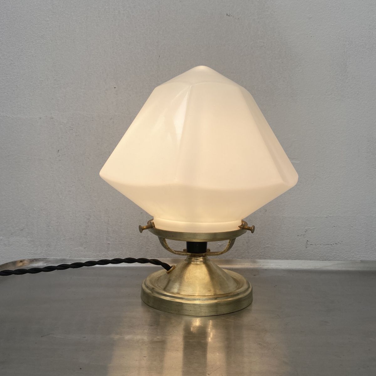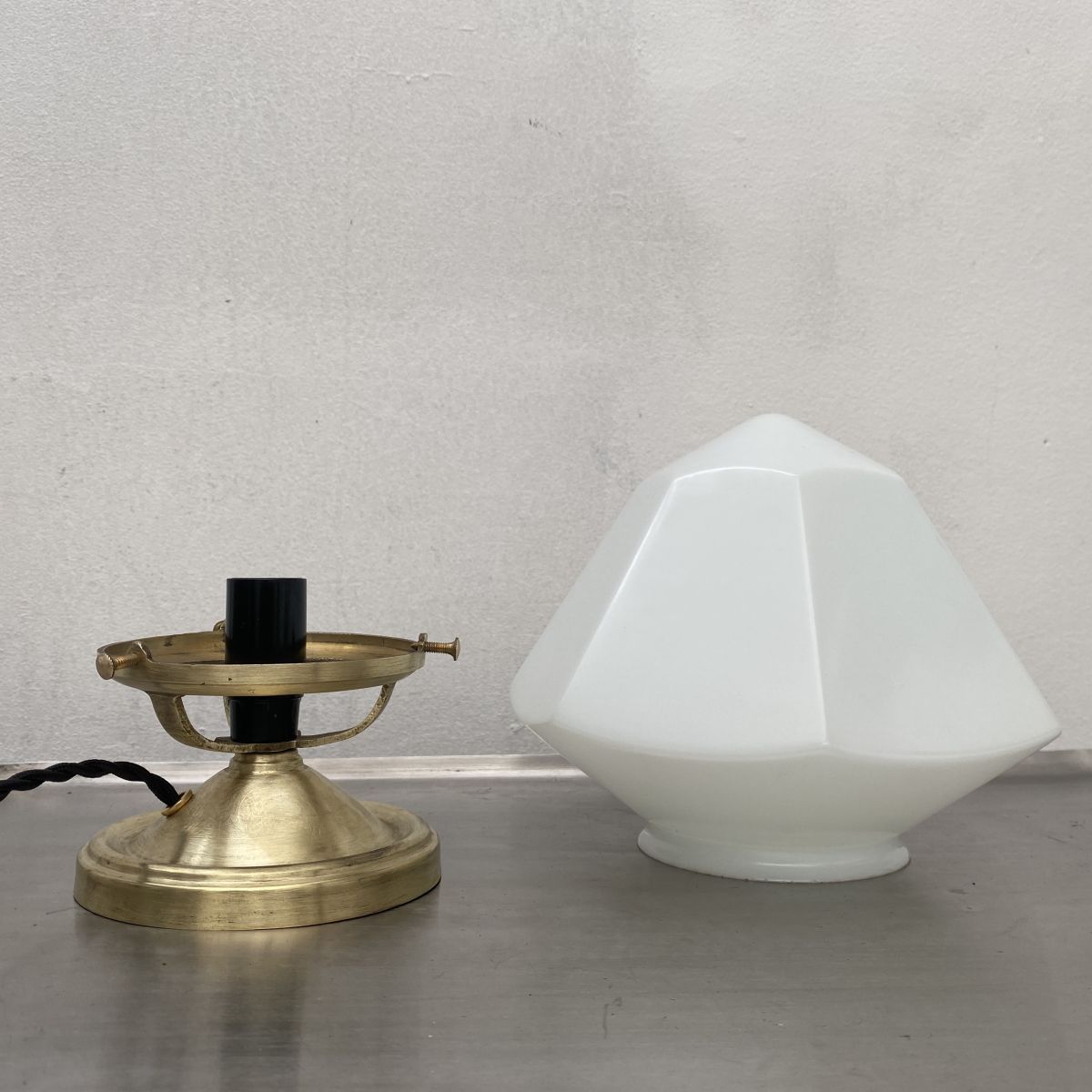 Lampe à poser des années 50 en opaline. Très belle lumière. La base est en laiton.