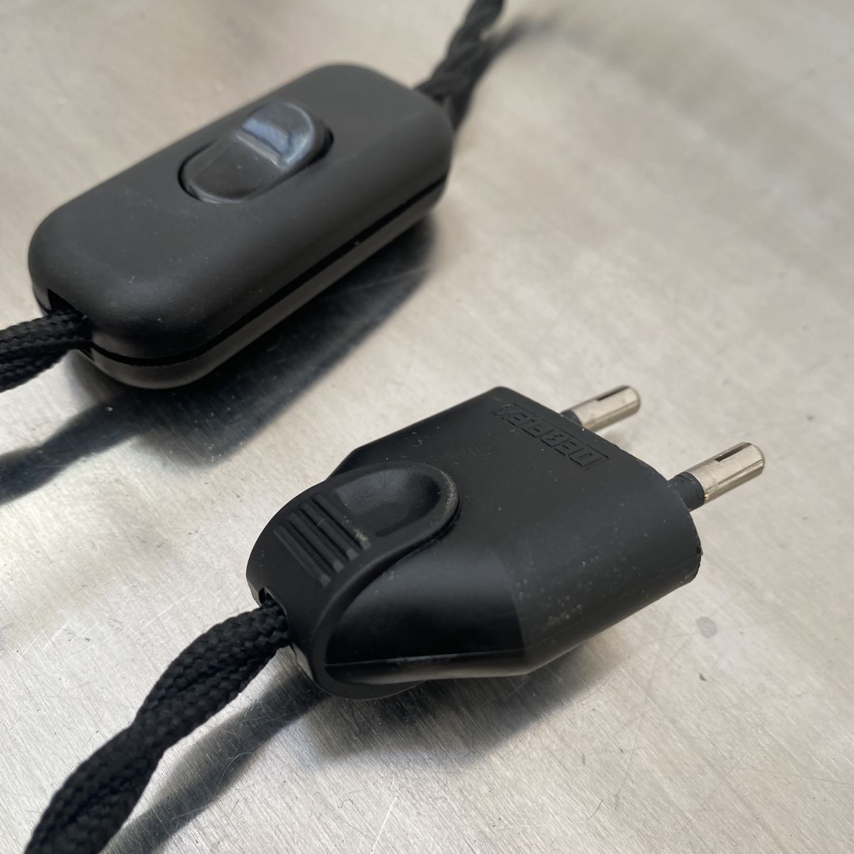 Entièrement restaurée. Electricité refaite à neuf avec fil noir en tissu tressé. Interrupteur sur fil. Douille à vis petit culot (E14)