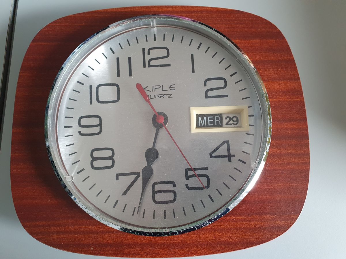 Cadran alu brossé, légèrement bombé, aiguilles noires et trotteuse rouge.