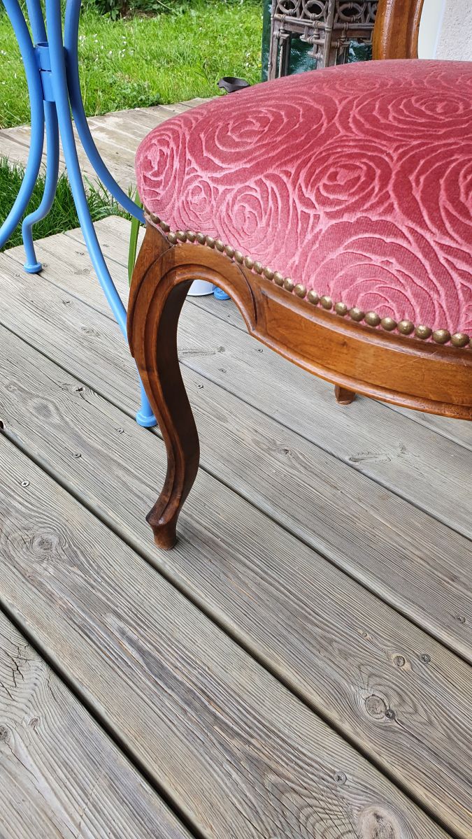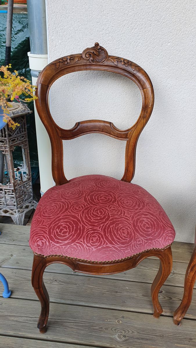 Paire de chaises napoléon III en hêtre recouvertes de velours de damas à décor de roses.