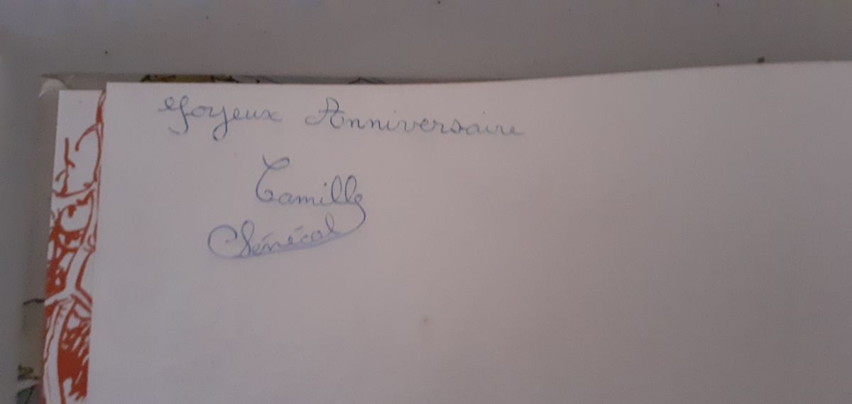 Marque : En page intérieure, un écrit "Joyeux Anniversaire". La tranche présente un accroc.