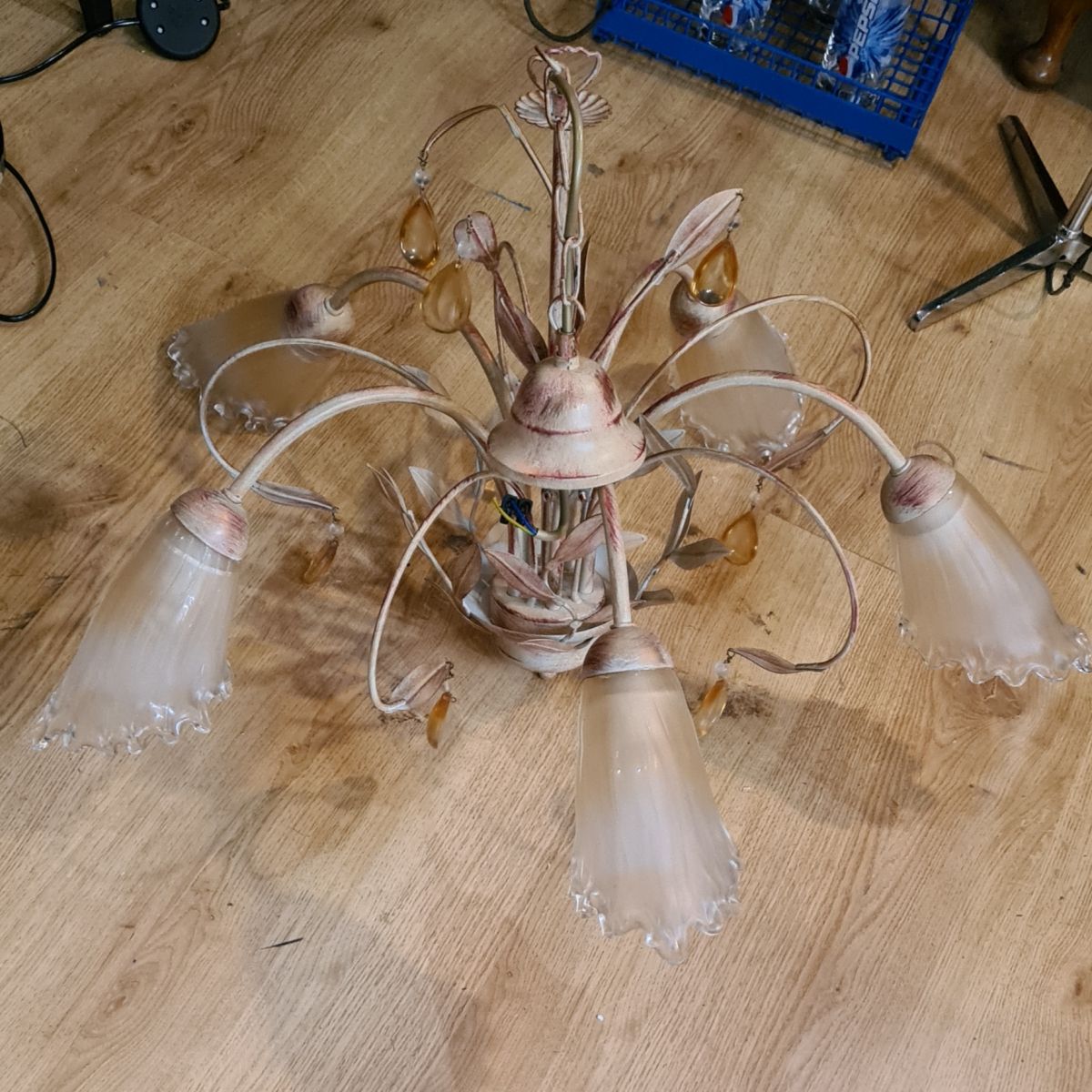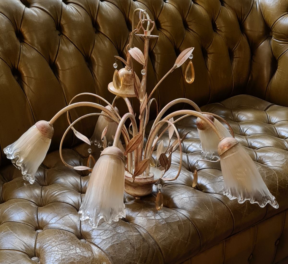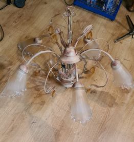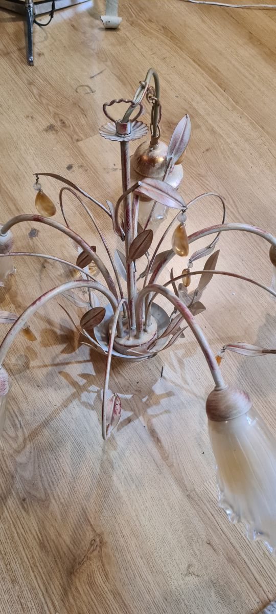 lustre fleural 5 tulipes 1980 avec jolie patine bon etat general 80x40