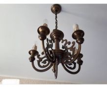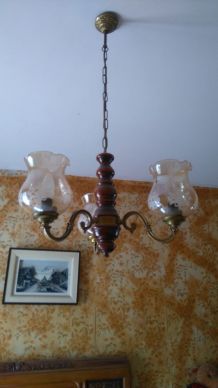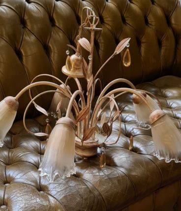 lustre fleural 5 tulipes 1980 avec jolie patine bon etat
