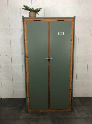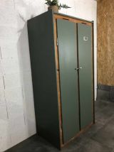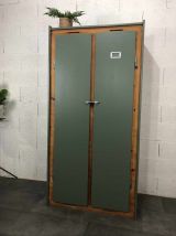 Ancien vestiaire d’atelier transformé en armoire penderie, bois et vert