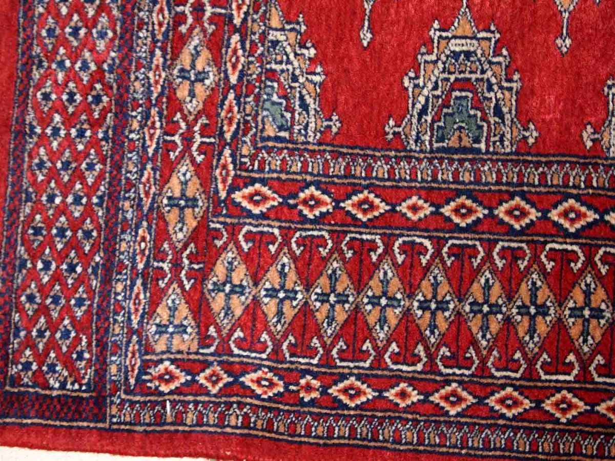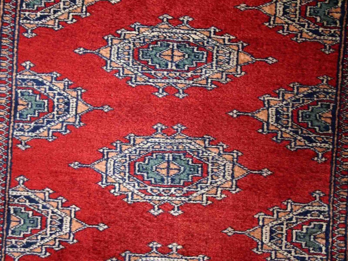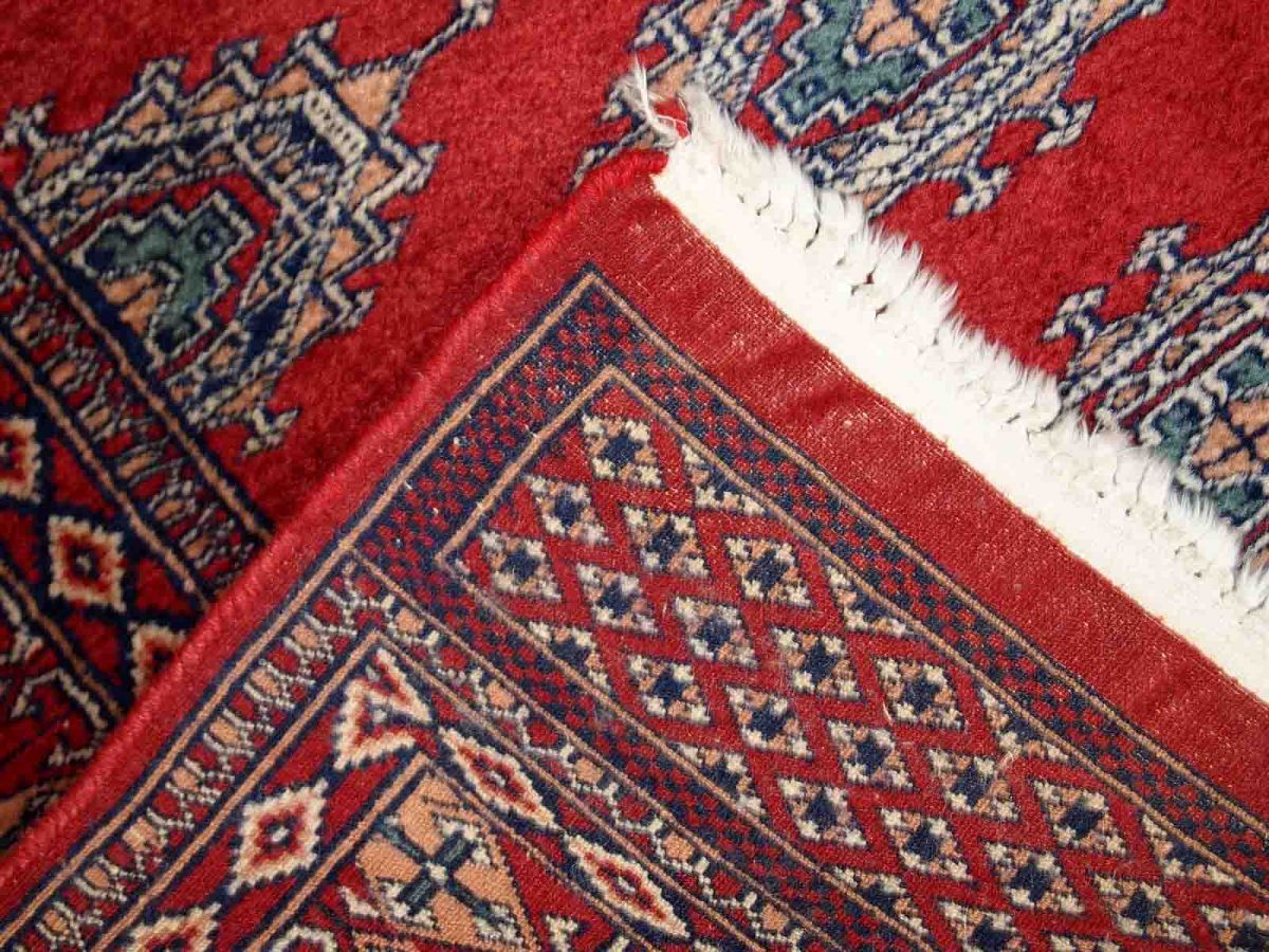 Vintage handmade Uzbek Bukhara rug in red wool. The rug is from the end of 20th century in original good condition.