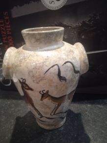 Dimensions et état: hauteur environ 31 cm, diamètre maxi environ 14 cm, diamètre de l’orifice environ 4 cm. Très bon état d’usage, pas de fissure, un petit éclat sous la base invisible quand le vase est posé.