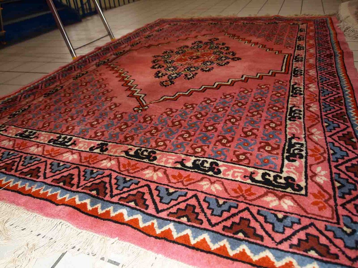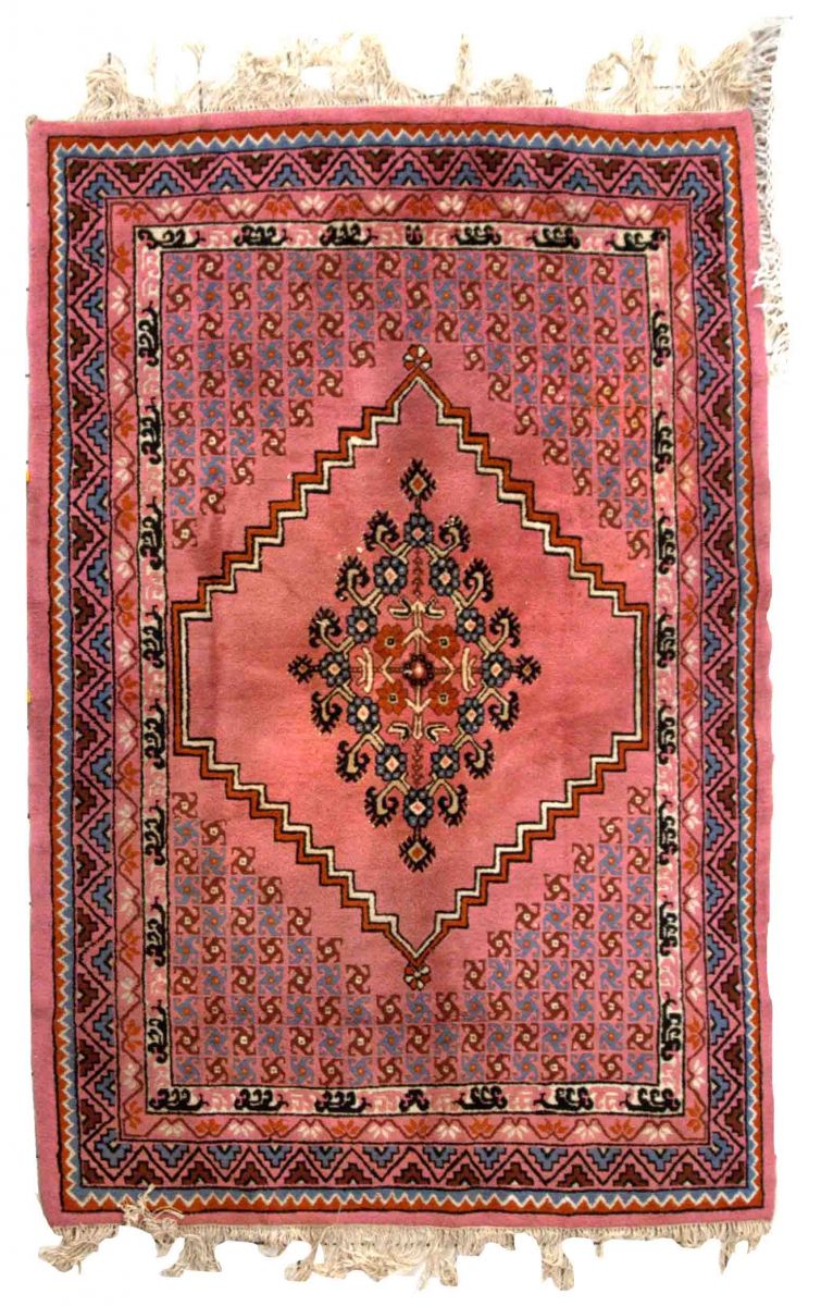 Vintage Berber rug from Morocco in original good condition. The rug made in the end of 20th century in wool.