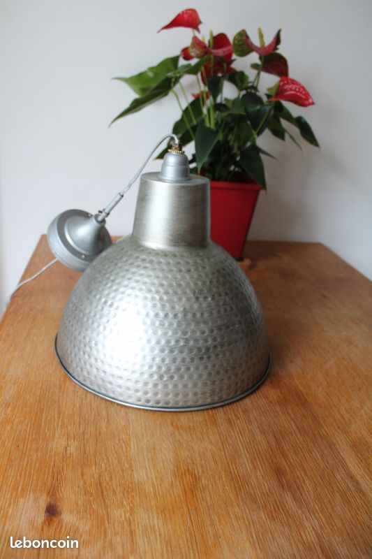 Matériau: fer. Abat jour effet tôle martelée.