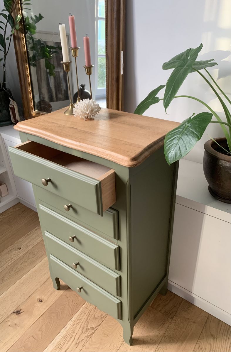 Il a été mis en beauté avec la douce nuance "Olive" de chez Ressource.