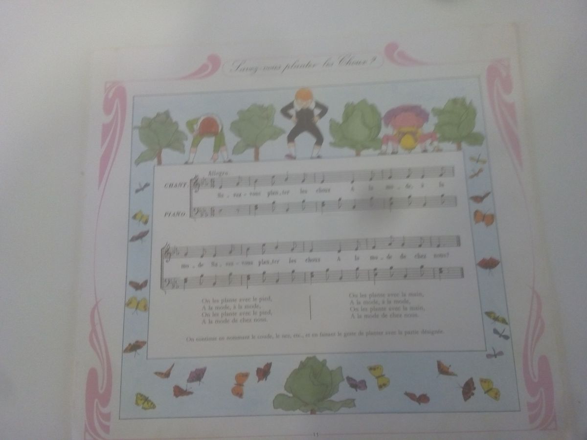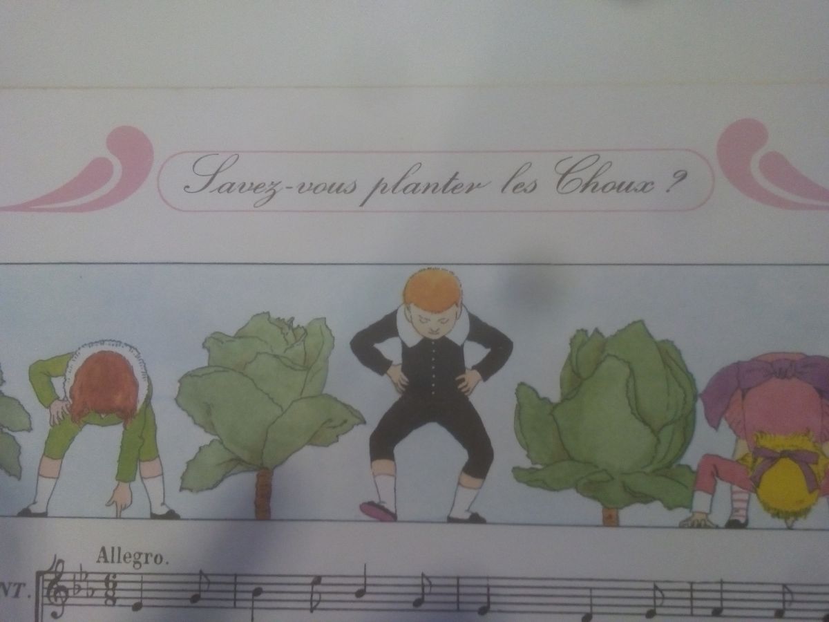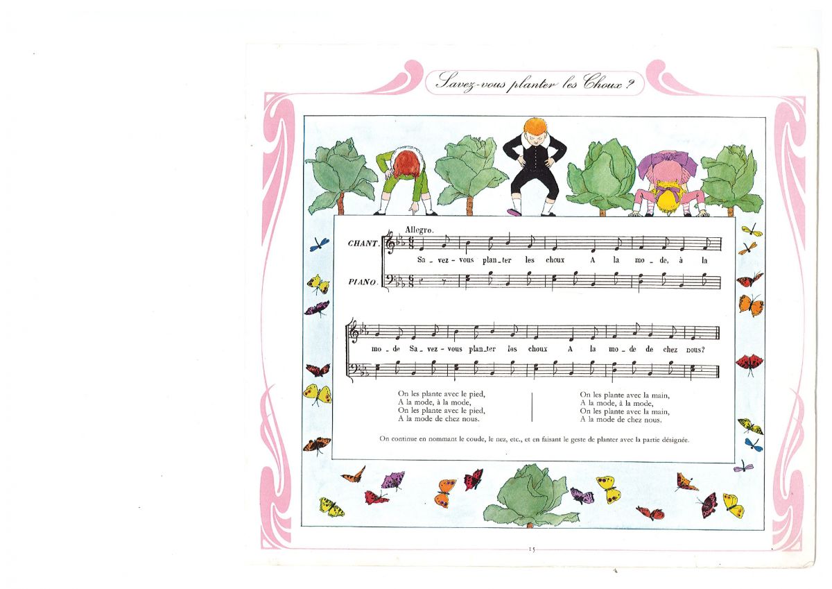 Titre de la chanson : "Savez-vous planter des choux", avec partitions