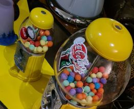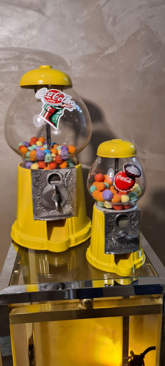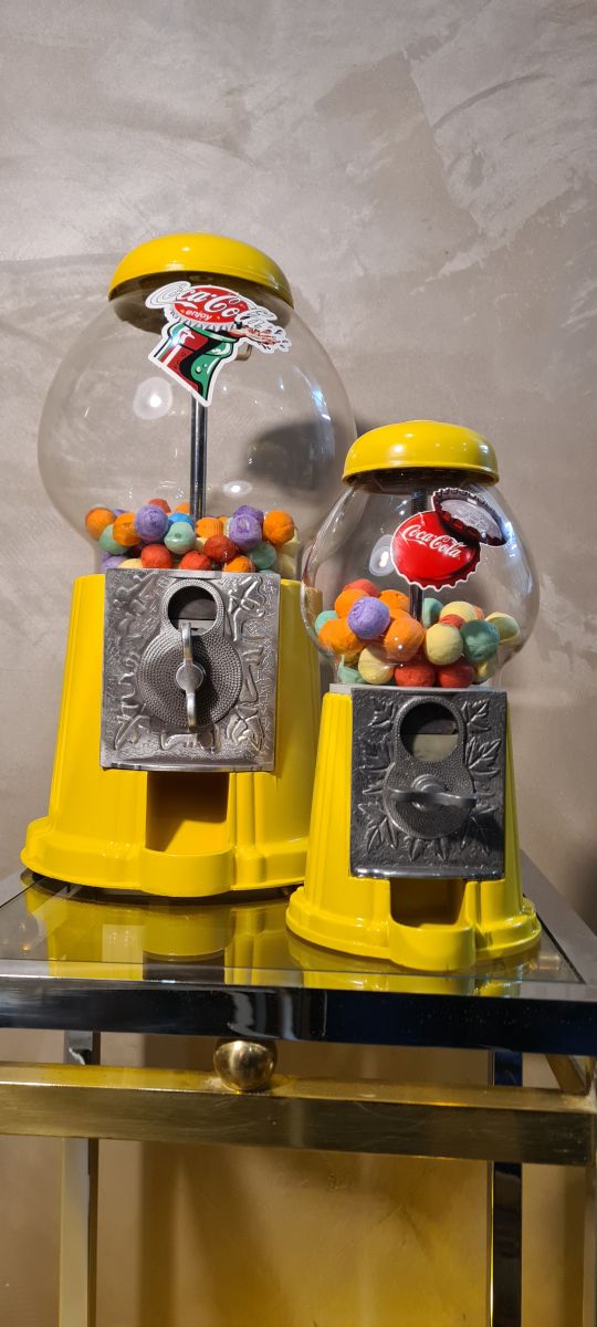 2 Distributeurs a bonbons jaune 28x15 fonte d alu et verre