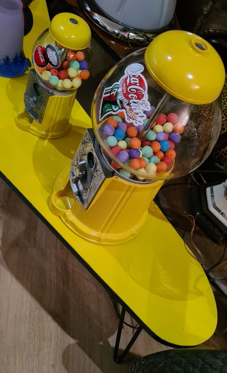 2 Distributeurs a bonbons jaune 28x15 fonte d alu et verre super deco