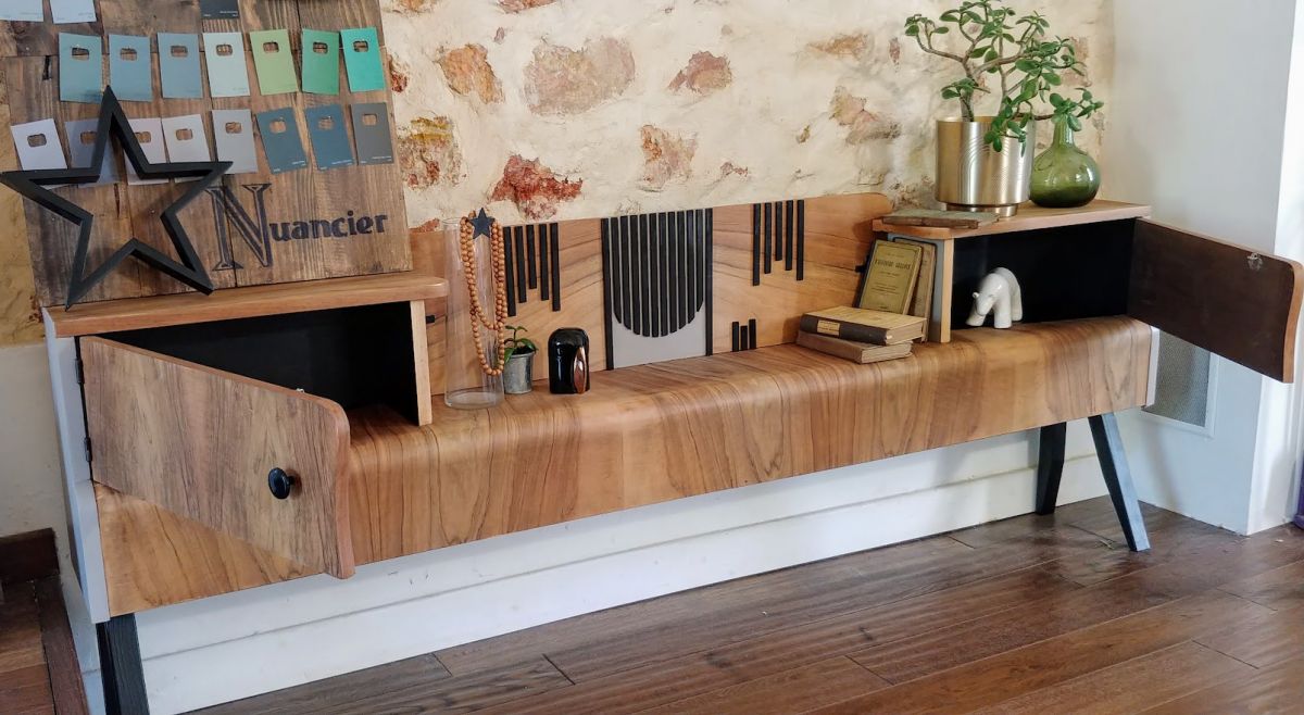 Upcycling d'un meuble ancien, avec la patine du temps et le look à la fois épuré et un côté industriel qui s'intègre à tous les styles.