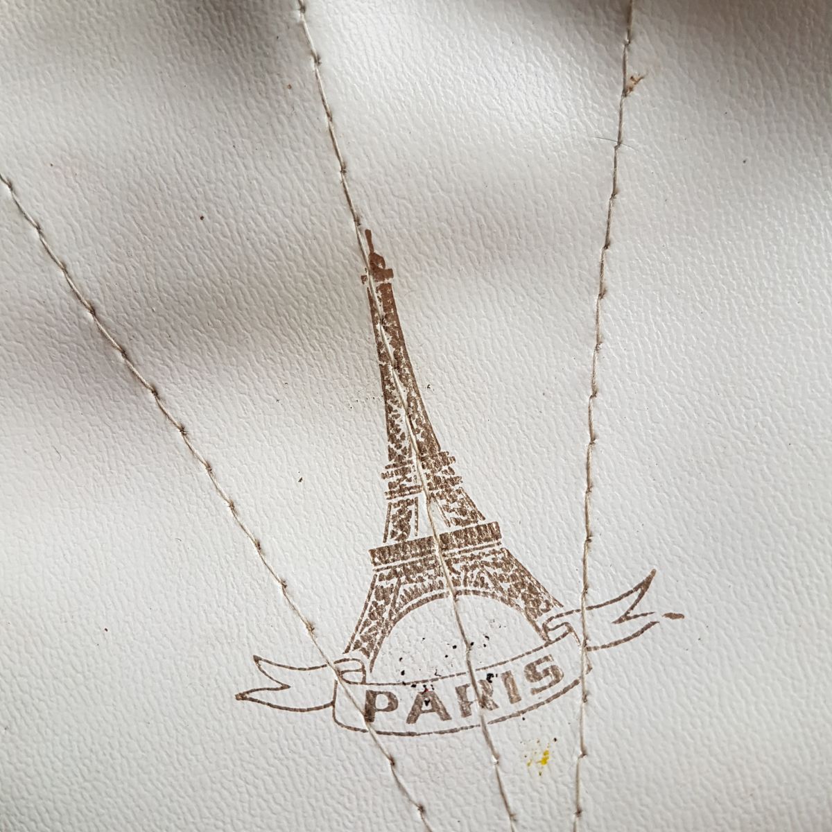 Petit sac à bandoulière blanc souvenir de Paris, impression image Tour Eiffel dorée sur le dessus, en sky blanc et 3 coutures apparentes. Fermeture éclair. Design entre le porte monnaie et le sac pour enfant pour ne trimballer que l'essentiel... absolument indispensable !