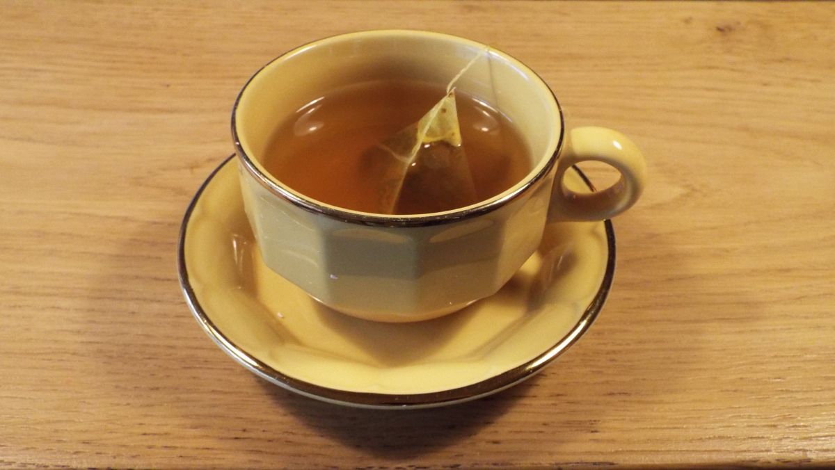 Tasse "Bistro" avec soucoupe : à Thé ou à Chocolat (comme on veut) . Jaune avec filet doré . Etat d'usage , sans ébréchures