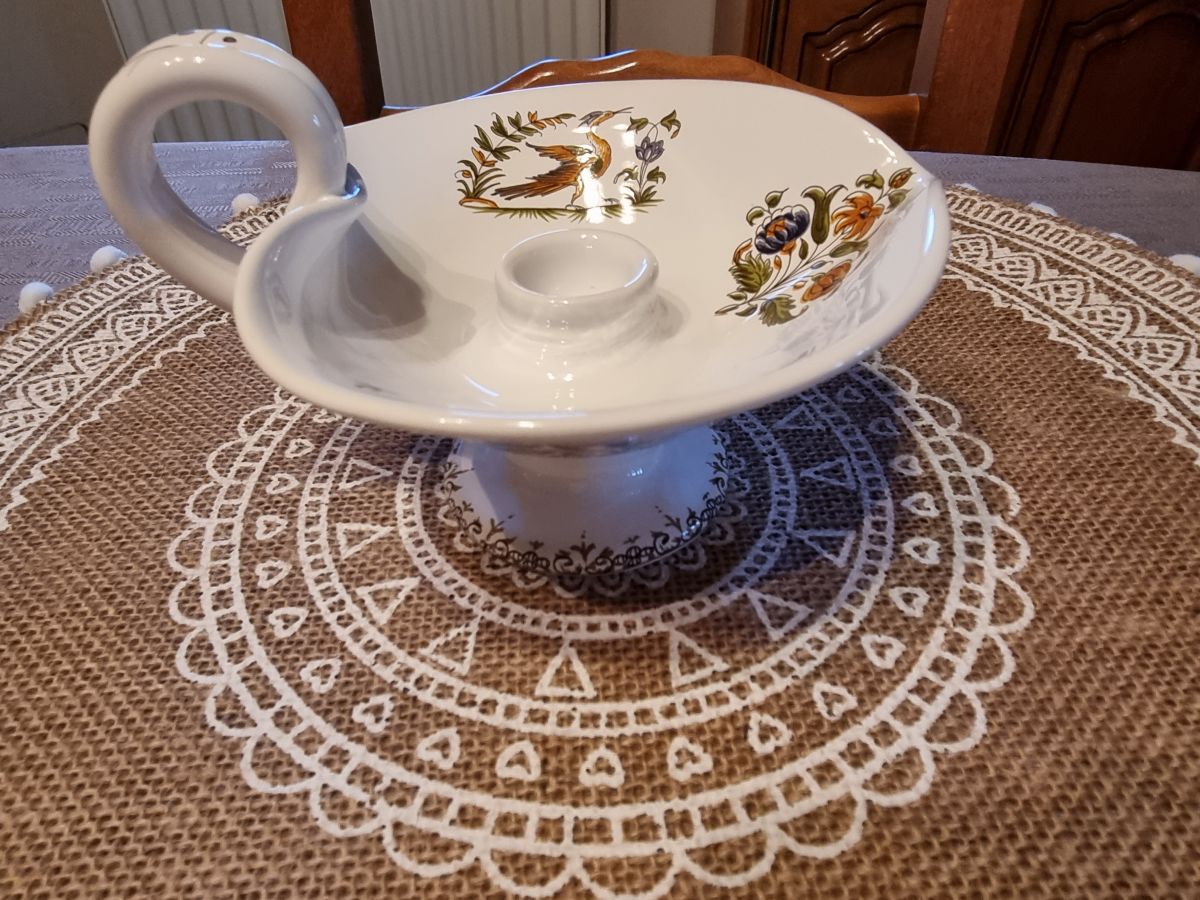 Juste utilisé en guise de décoration, bougie jamais allumée à l'intérieure, en parfait état général hormis un "micro" éclat quasiment non visible sur un rebord... (voir dernière photo !!!)