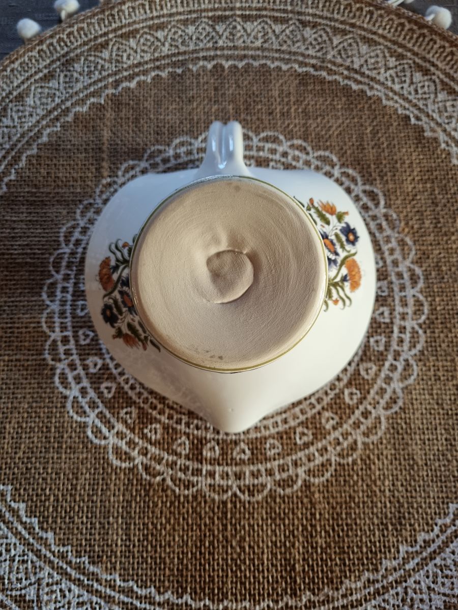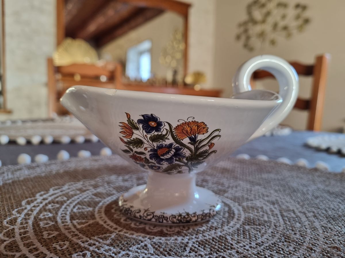 En céramique émaillée blanche, motifs végétaux peints multicolores