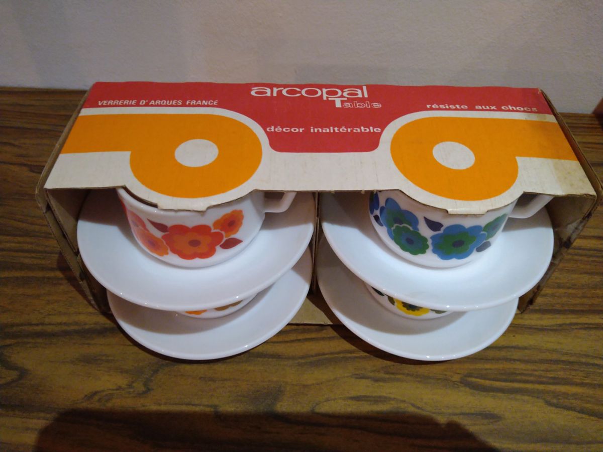4 tasses et 4 sous tasses ARCOPAL LOTUS