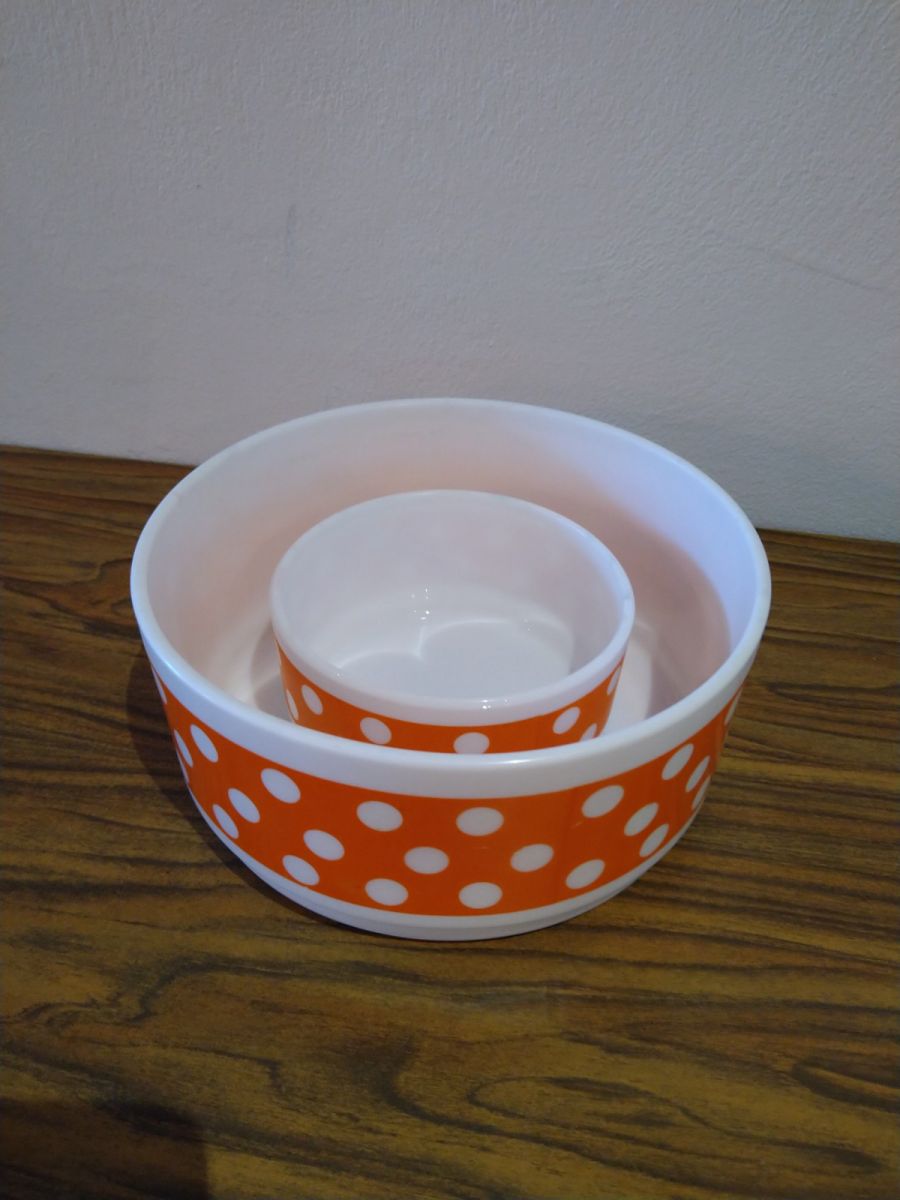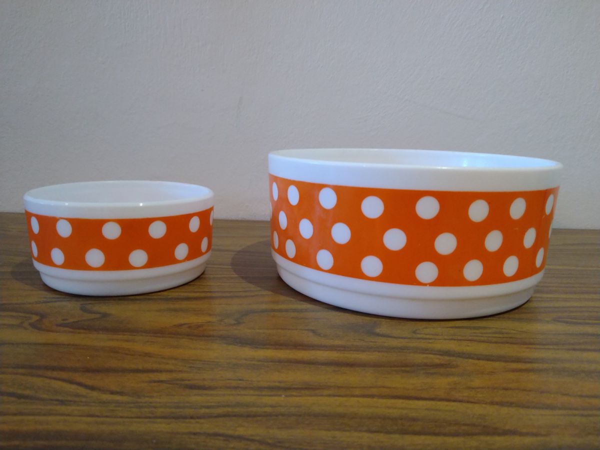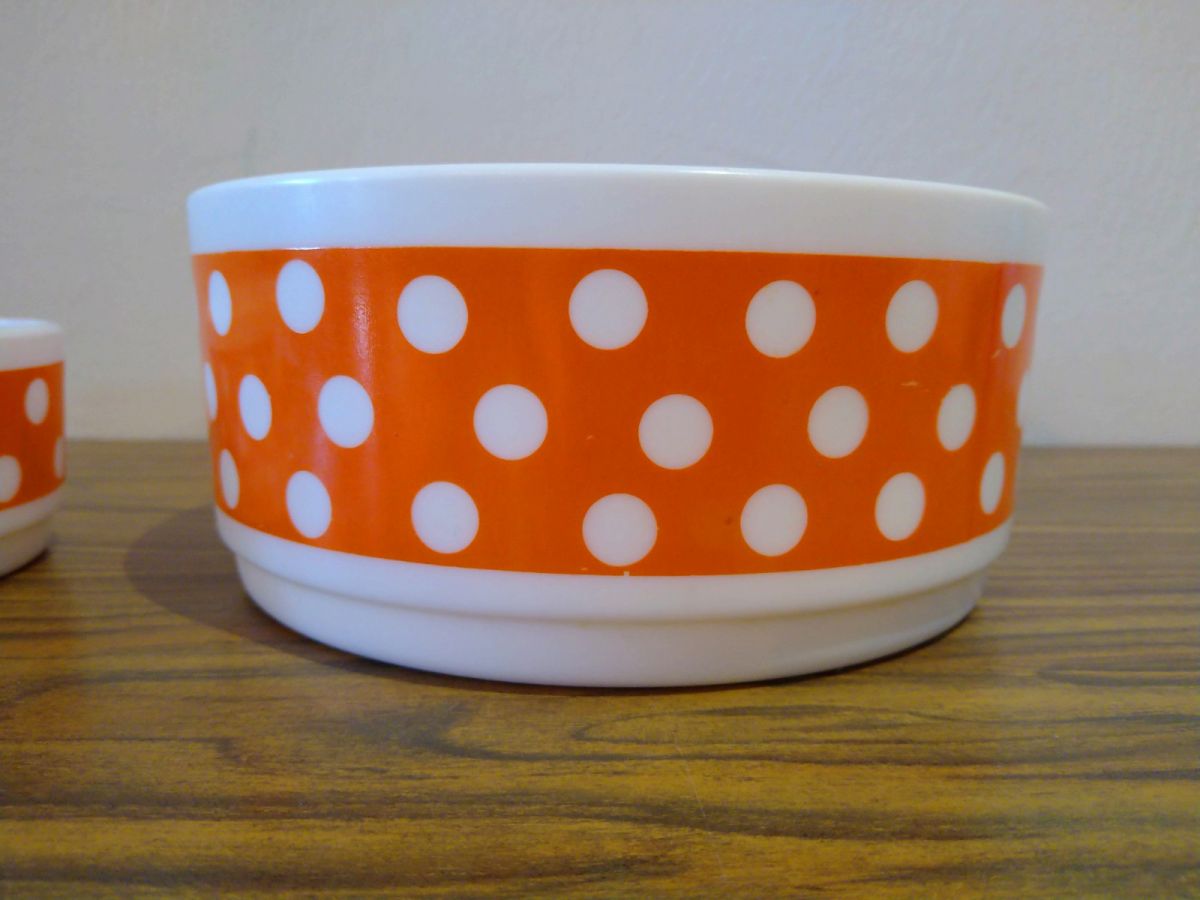 Lot Saladier et ramequin Arcopal Polka Orange TBE